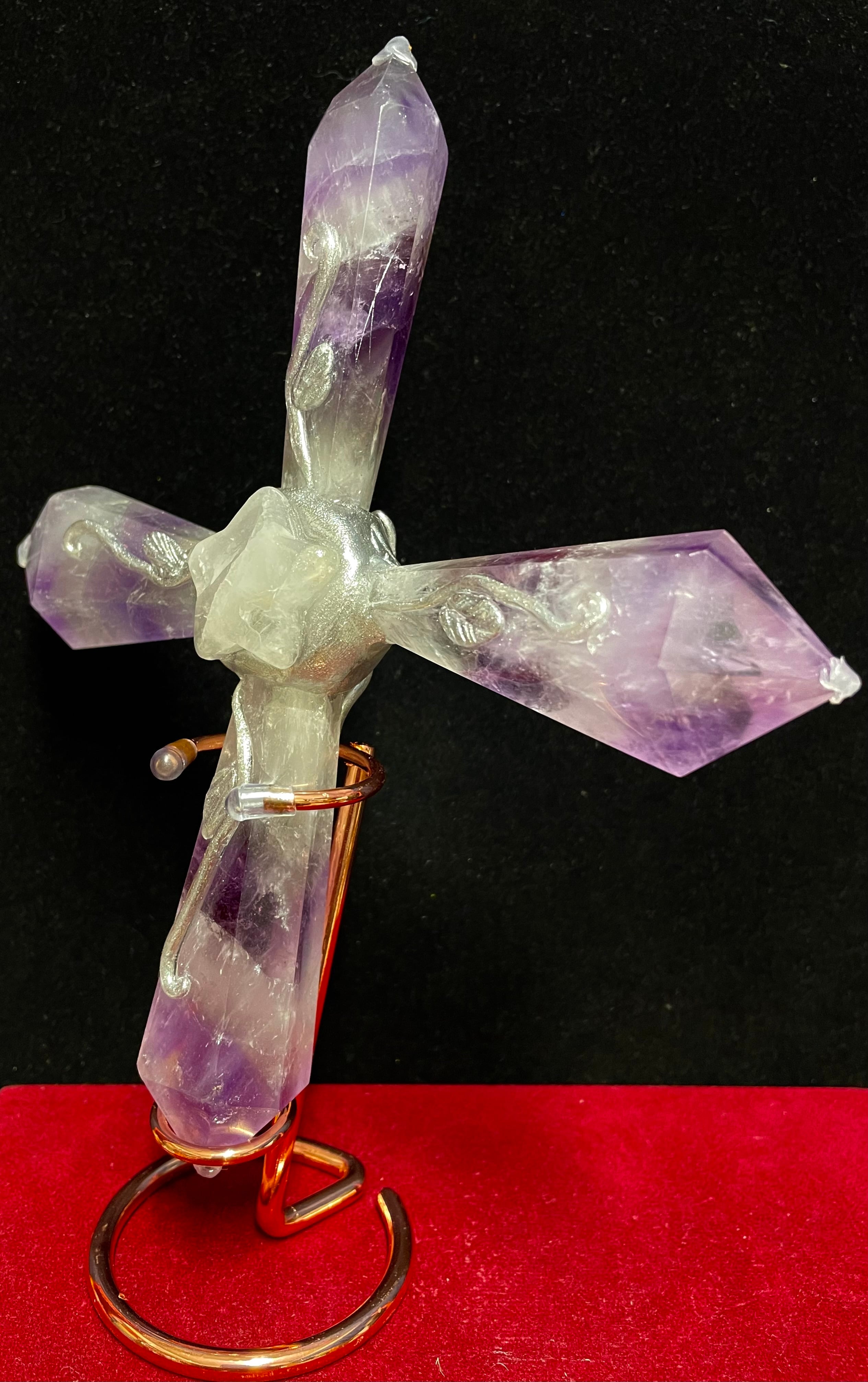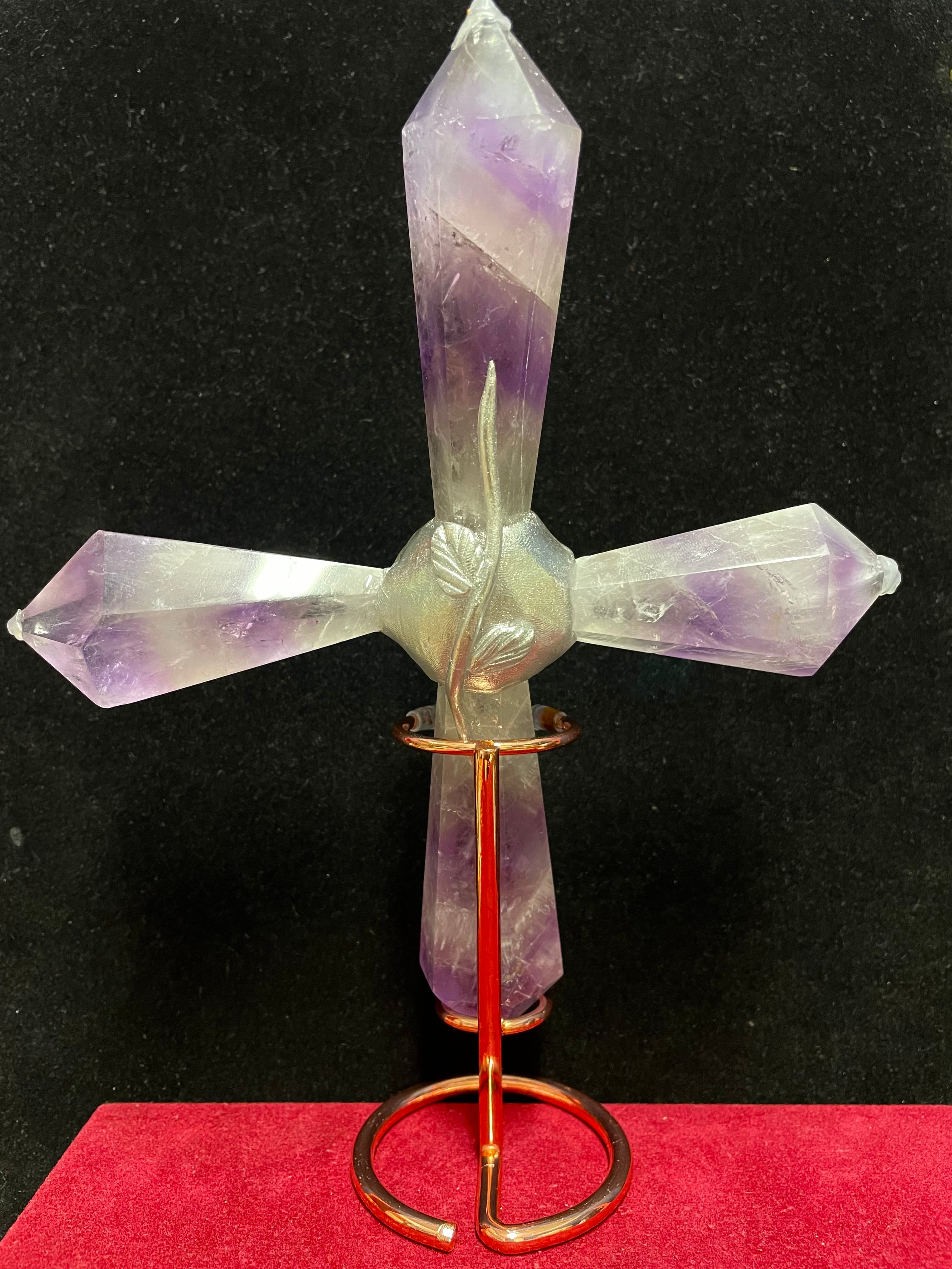 3) 愛と平和のアメジスト・クロス!「アート・クリスタルワンド」ハンドメイド(台座付)