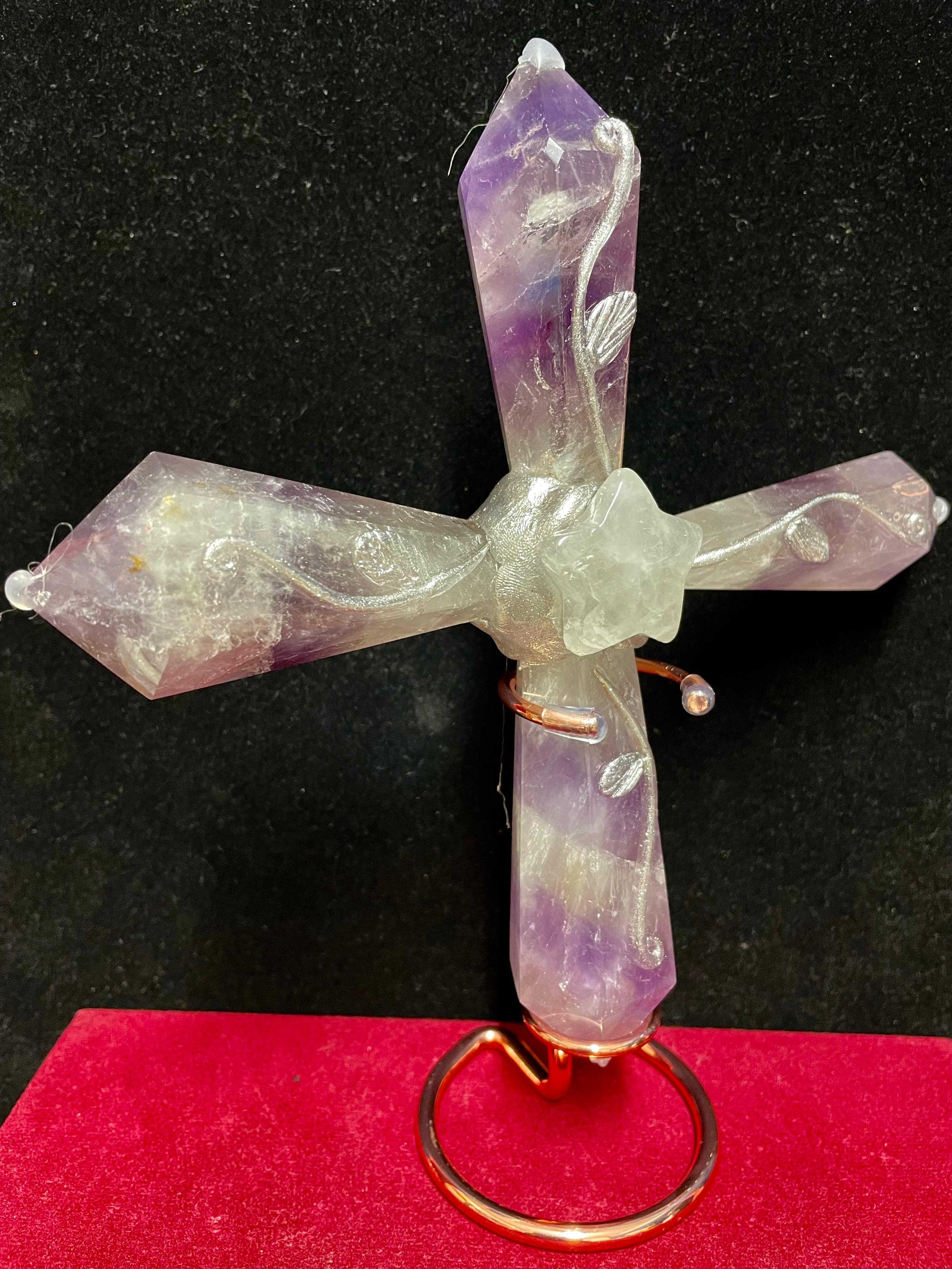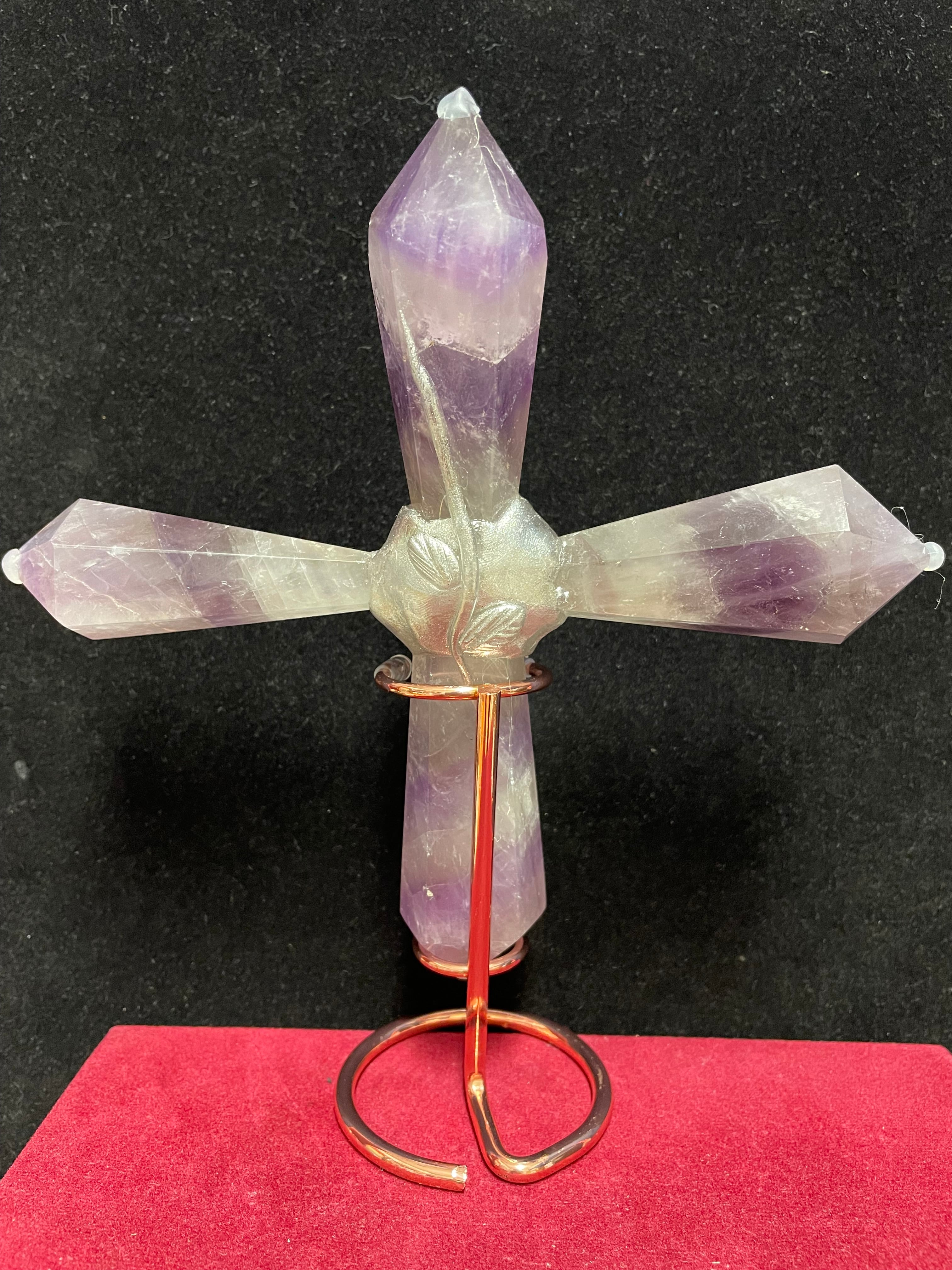 4) 愛と平和のアメジスト・クロス!「アート・クリスタルワンド」ハンドメイド(台座付)