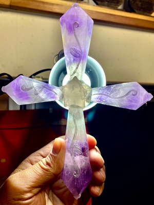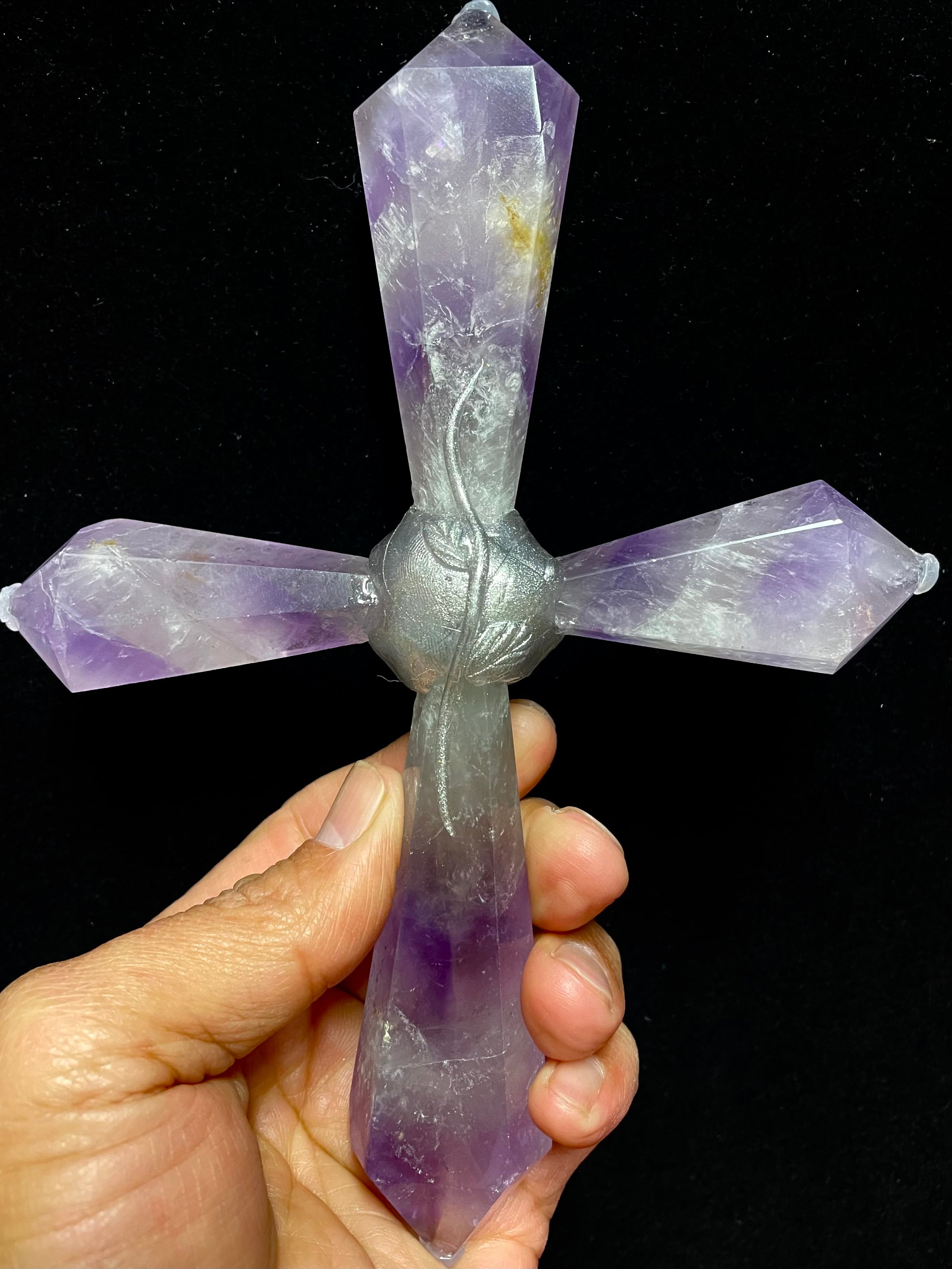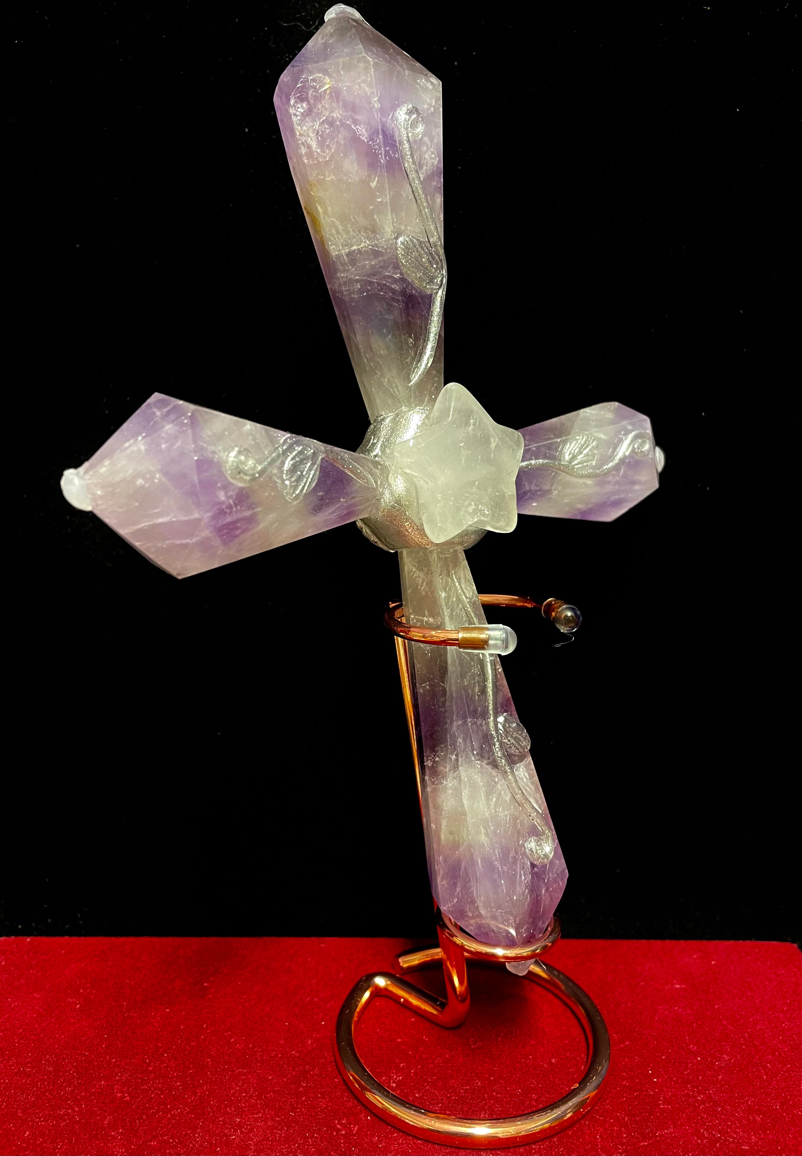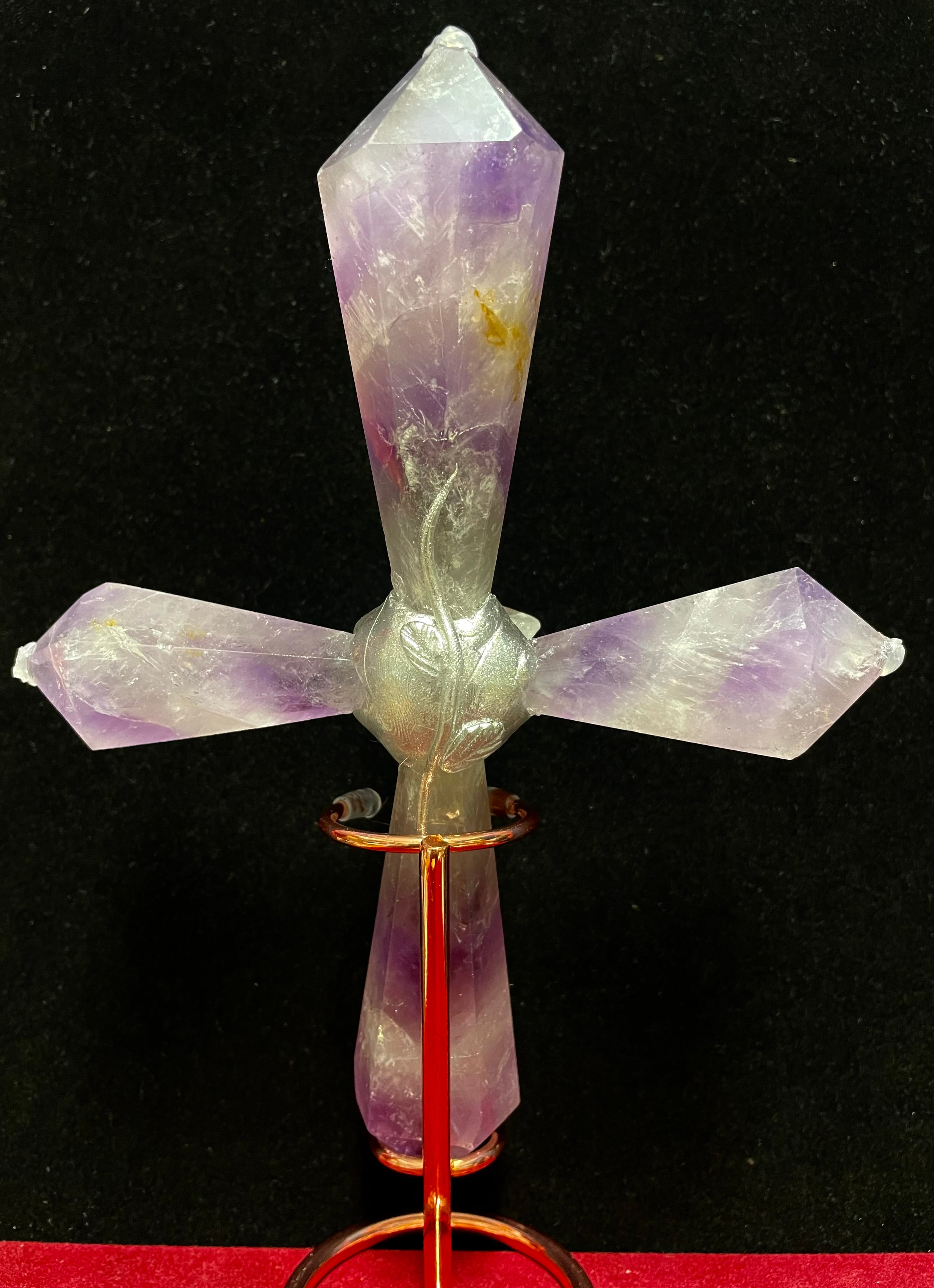 5) 愛と平和のアメジスト・クロス!「アート・クリスタルワンド」ハンドメイド(台座付)