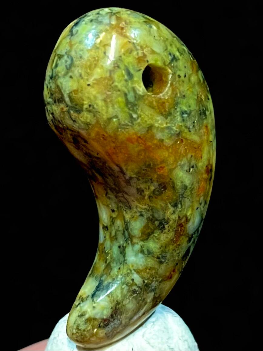 勾玉の形は東アジアと日本において古代のルーツを持ち、精神と物質の融合、母胎、生命力の流れを象徴します。蓮山石から彫られたものは、しばしば以下のように用いられます。