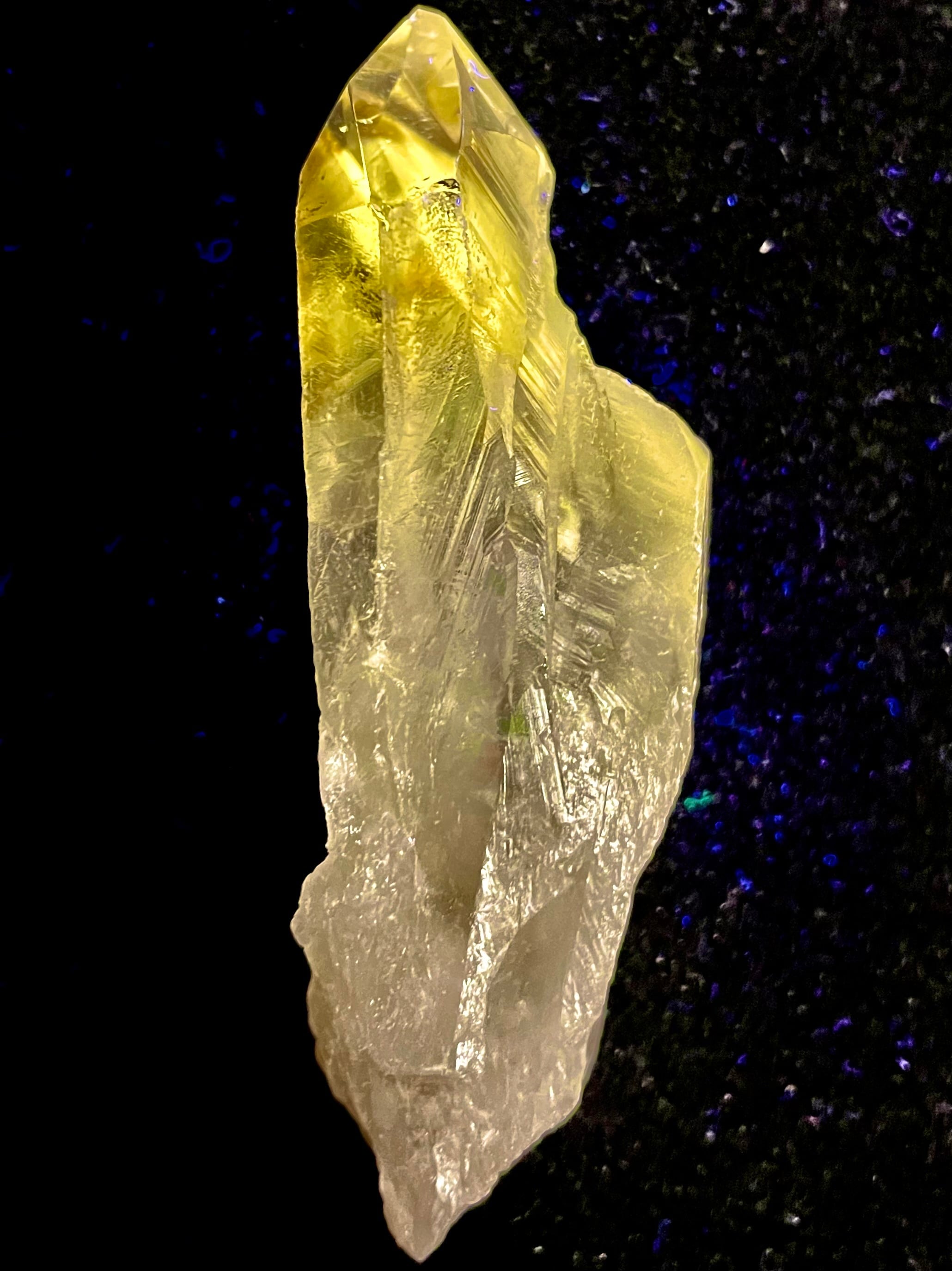 蛍光特性により高次元との繋がりが増幅され、瞑想やスピリットガイド・ハイヤーセルフからのメッセージ受容に極めて有効な補助となります。