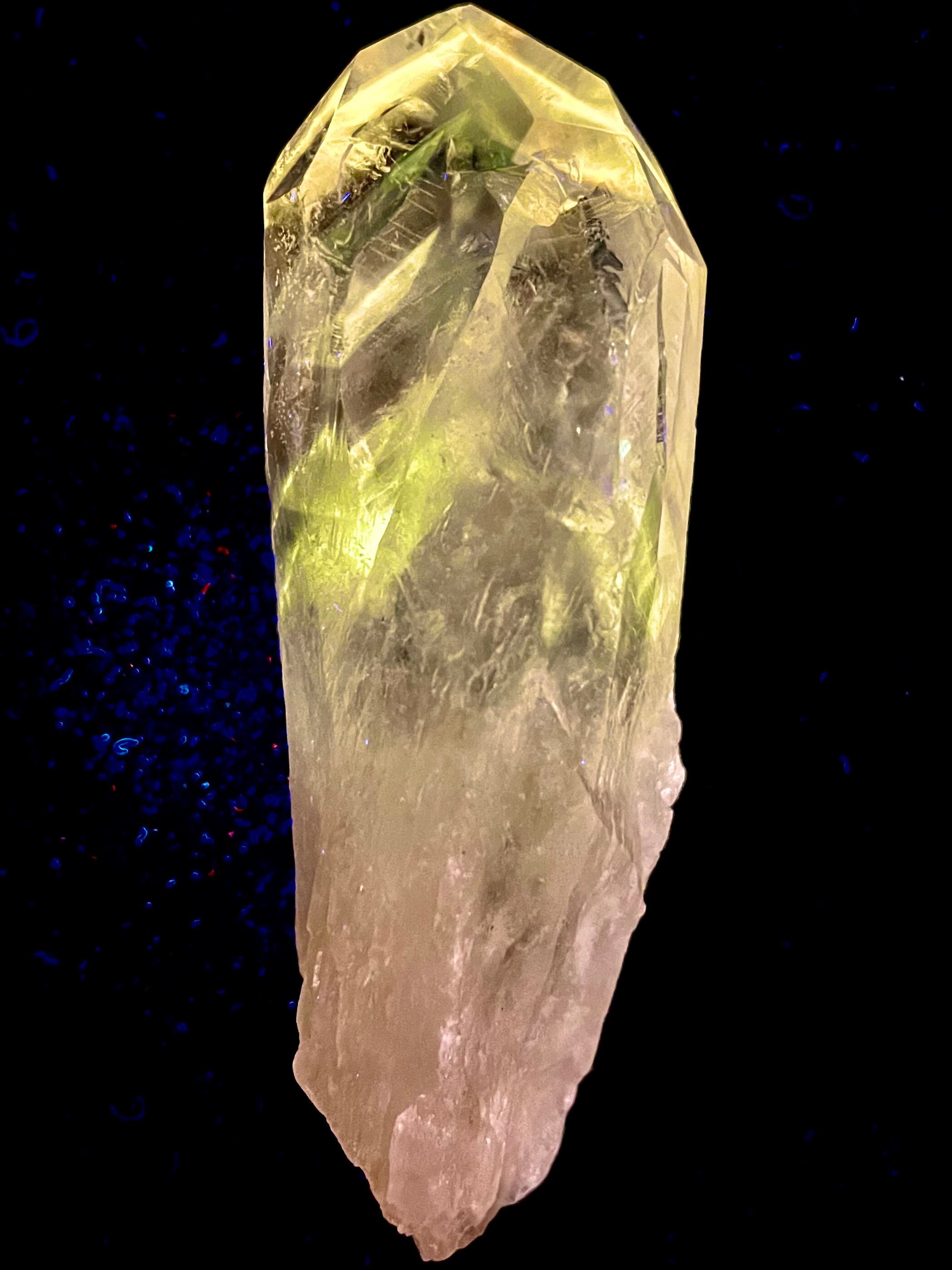 蛍光特性により高次元との繋がりが増幅され、瞑想やスピリットガイド・ハイヤーセルフからのメッセージ受容に極めて有効な補助となります。