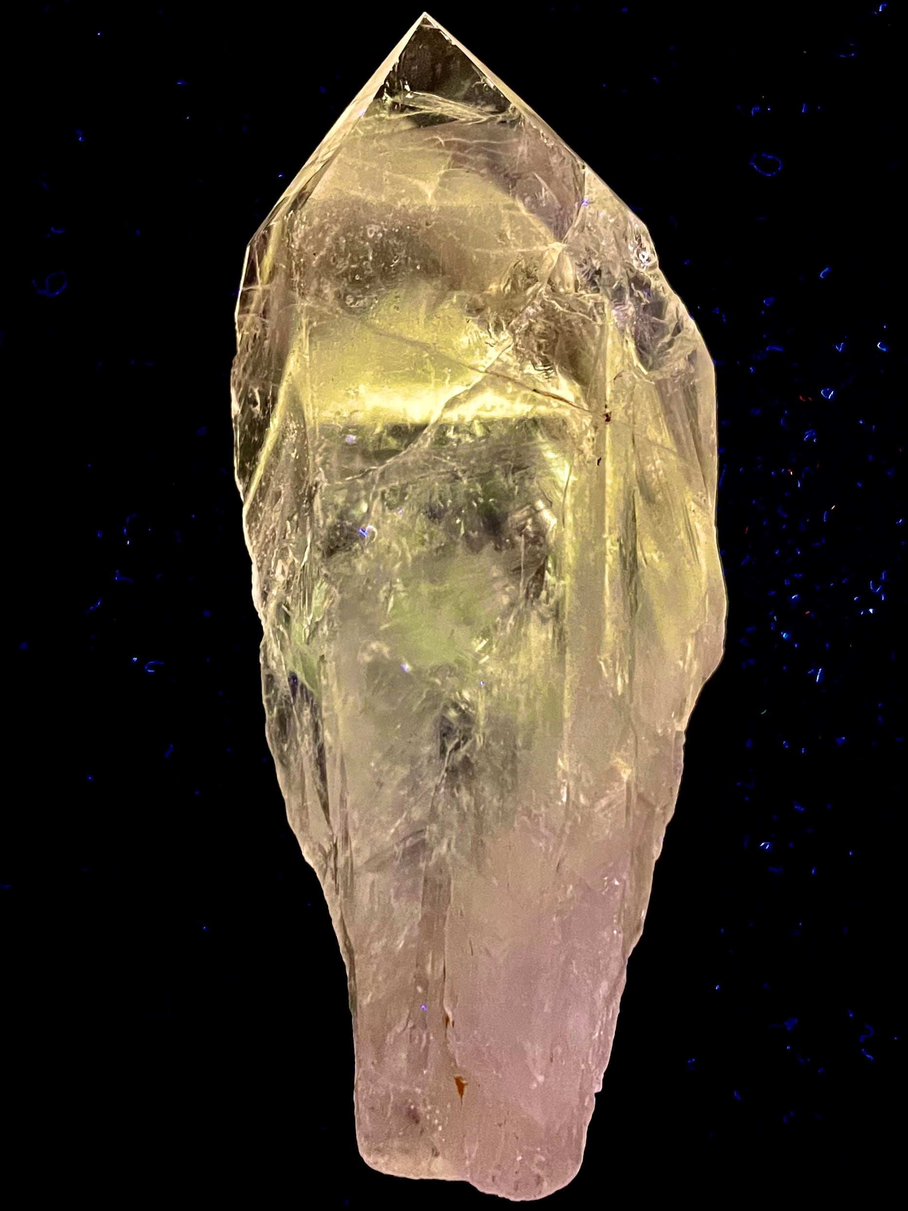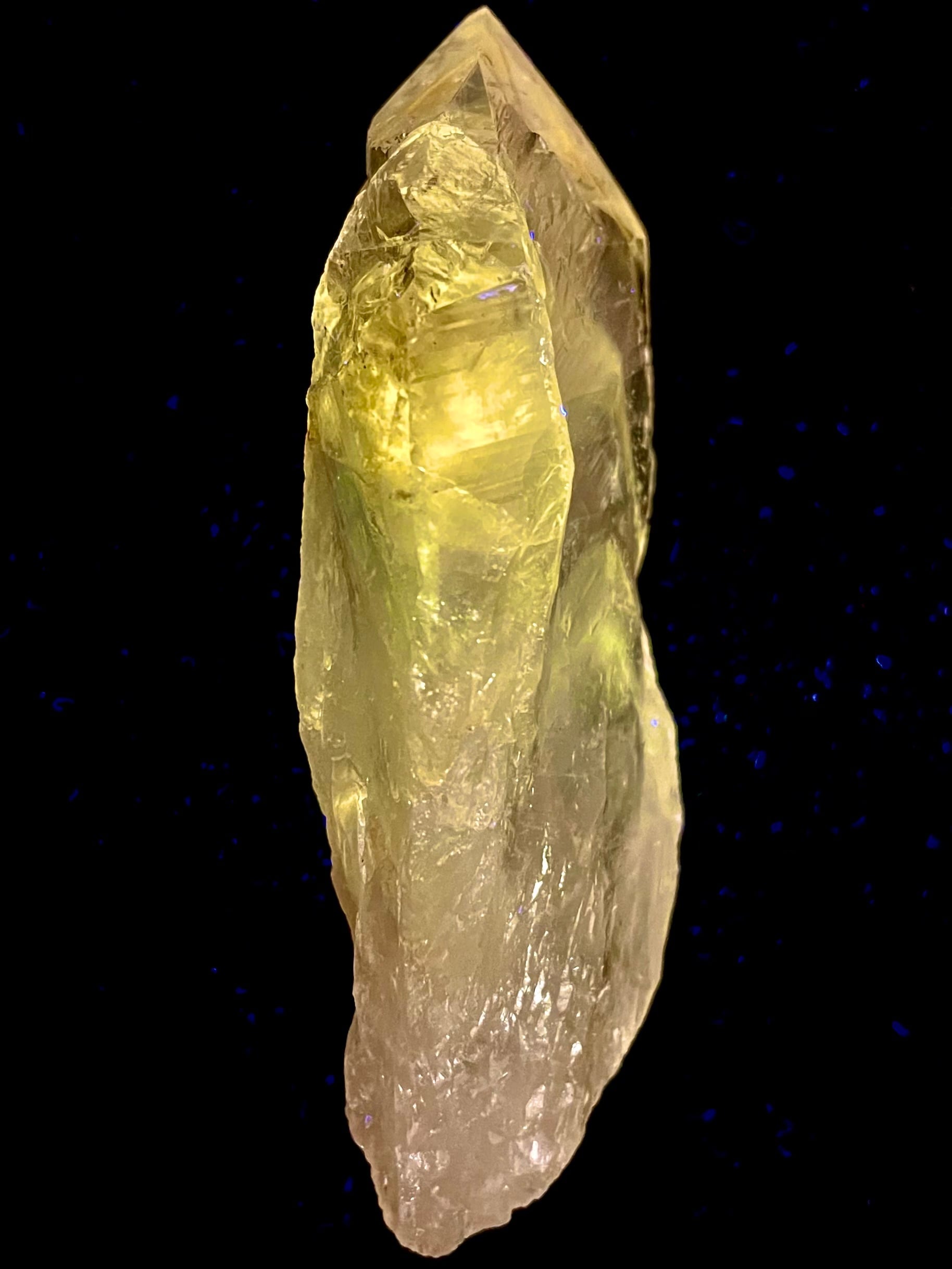 蛍光特性により高次元との繋がりが増幅され、瞑想やスピリットガイド・ハイヤーセルフからのメッセージ受容に極めて有効な補助となります。