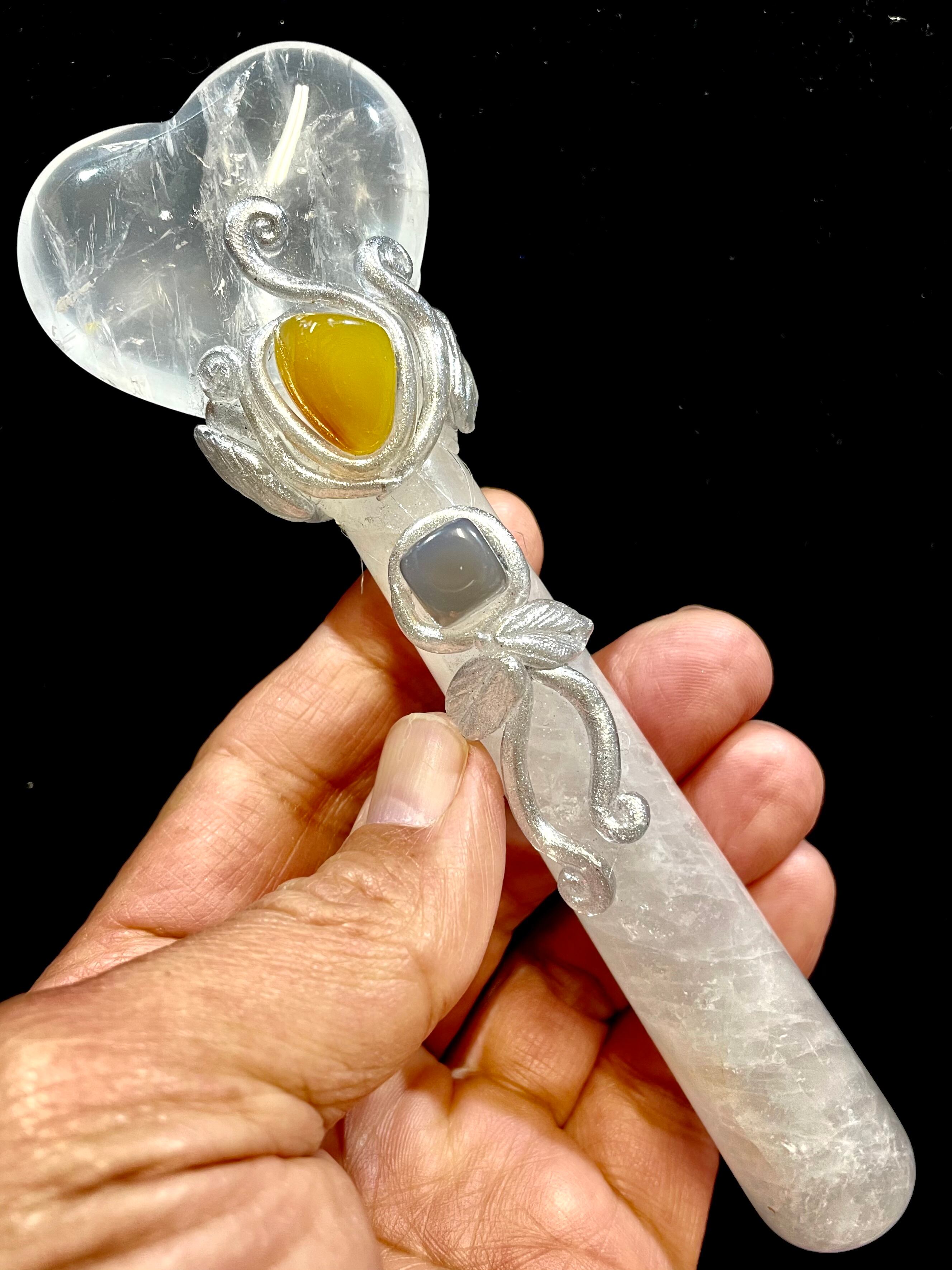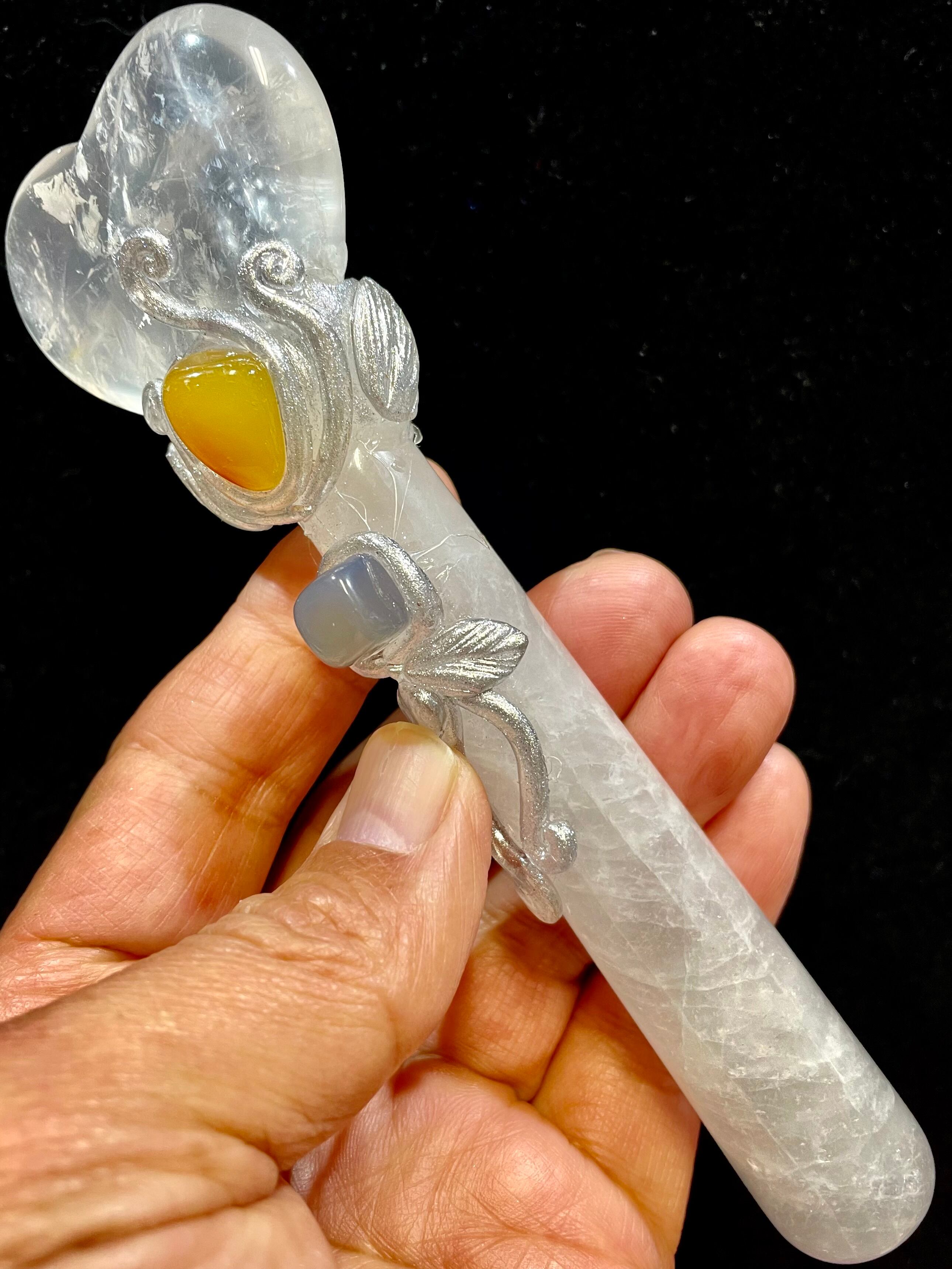 この美しい「クリスタルワンド」は、エネルギーを高めるために特別にデザインされました。卓越したアーティストの感性で丁寧に作られ、ハンドメイドの特性が際立っています。