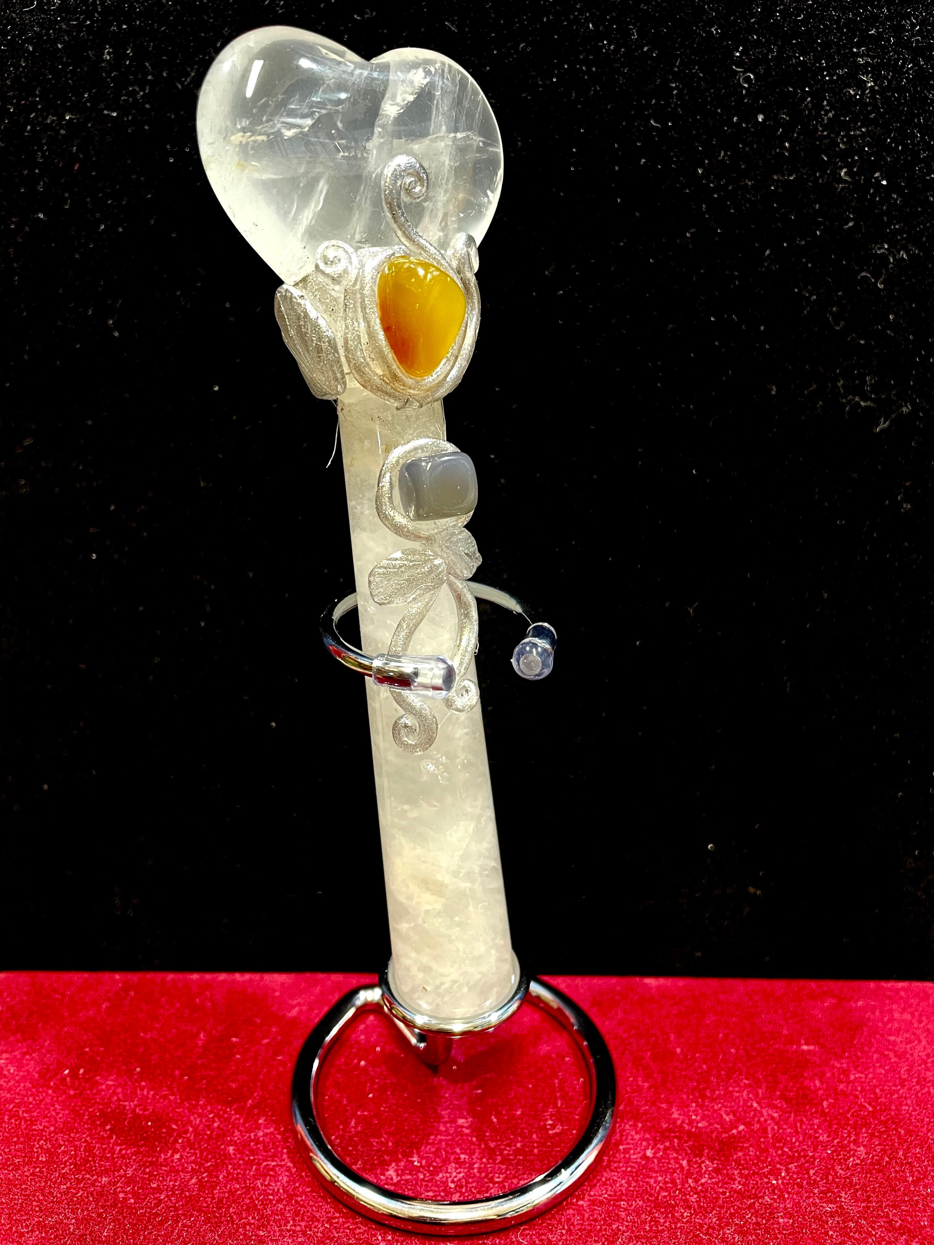 クオーツ、カーネリアン等を活用したハンドメイドの「クリスタルワンド」です。