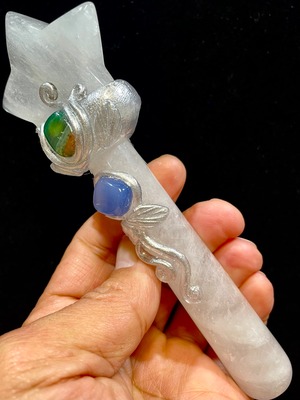 クオーツ、アベンチュリン等を活用したハンドメイドの「クリスタルワンド」です。