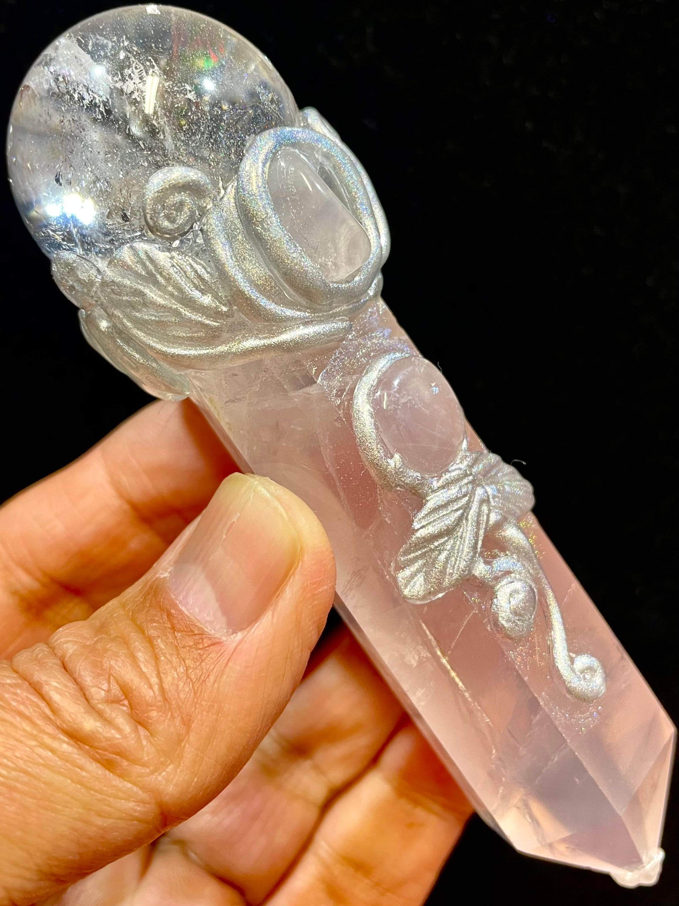 このワンドを使用することで、高次元の存在と繋がり、直感を高めることができるでしょう。また、リラクゼーションや瞑想の際にも、安心感を与えてくれます。