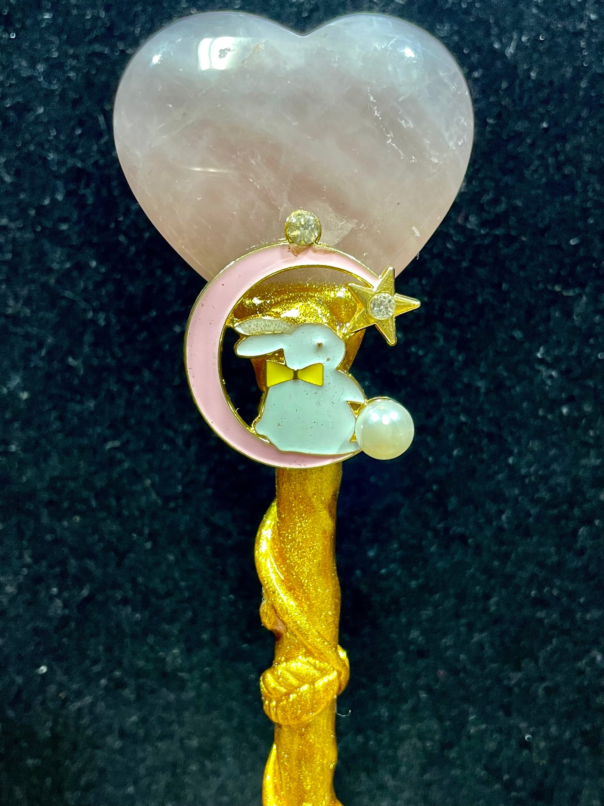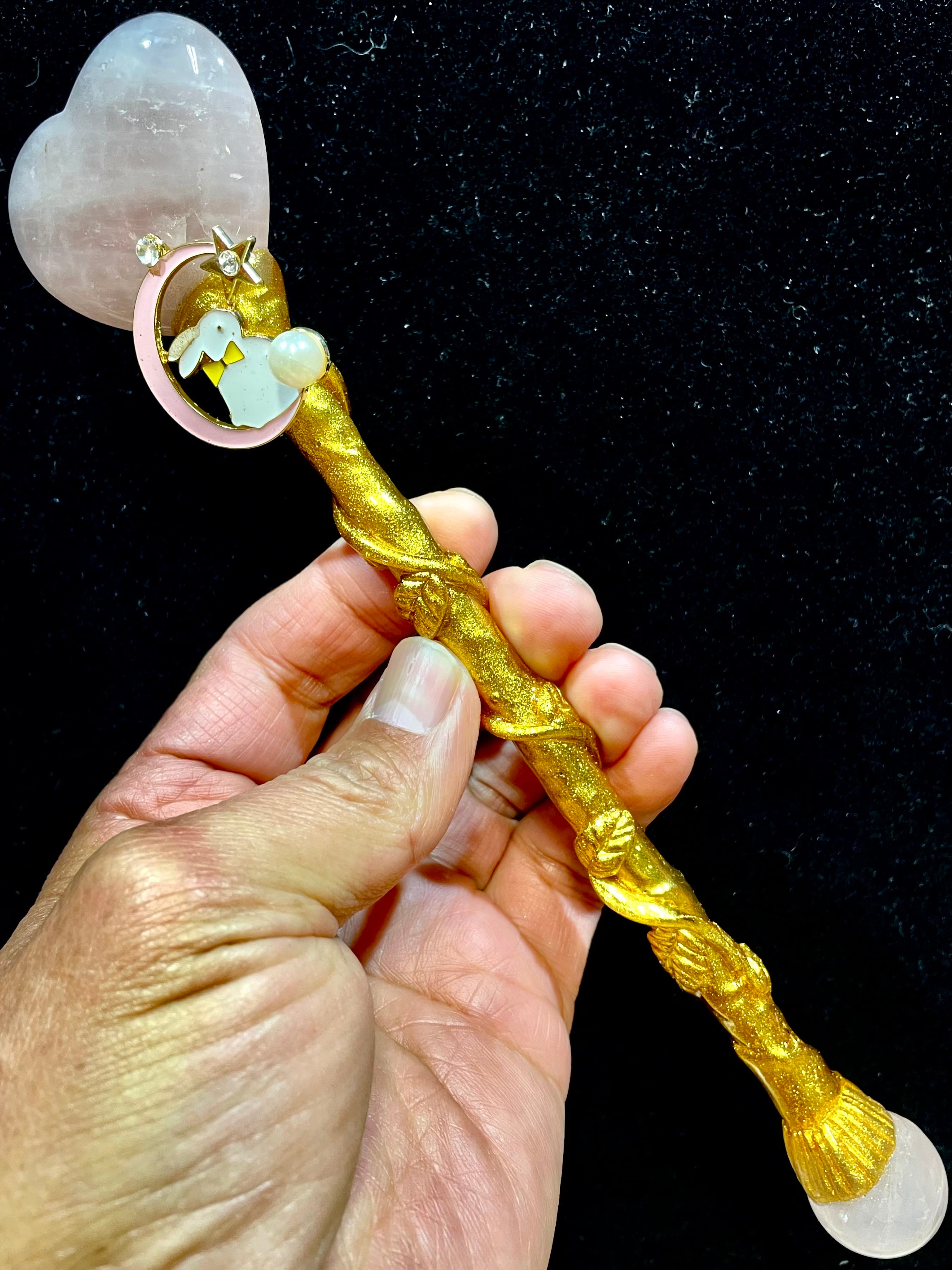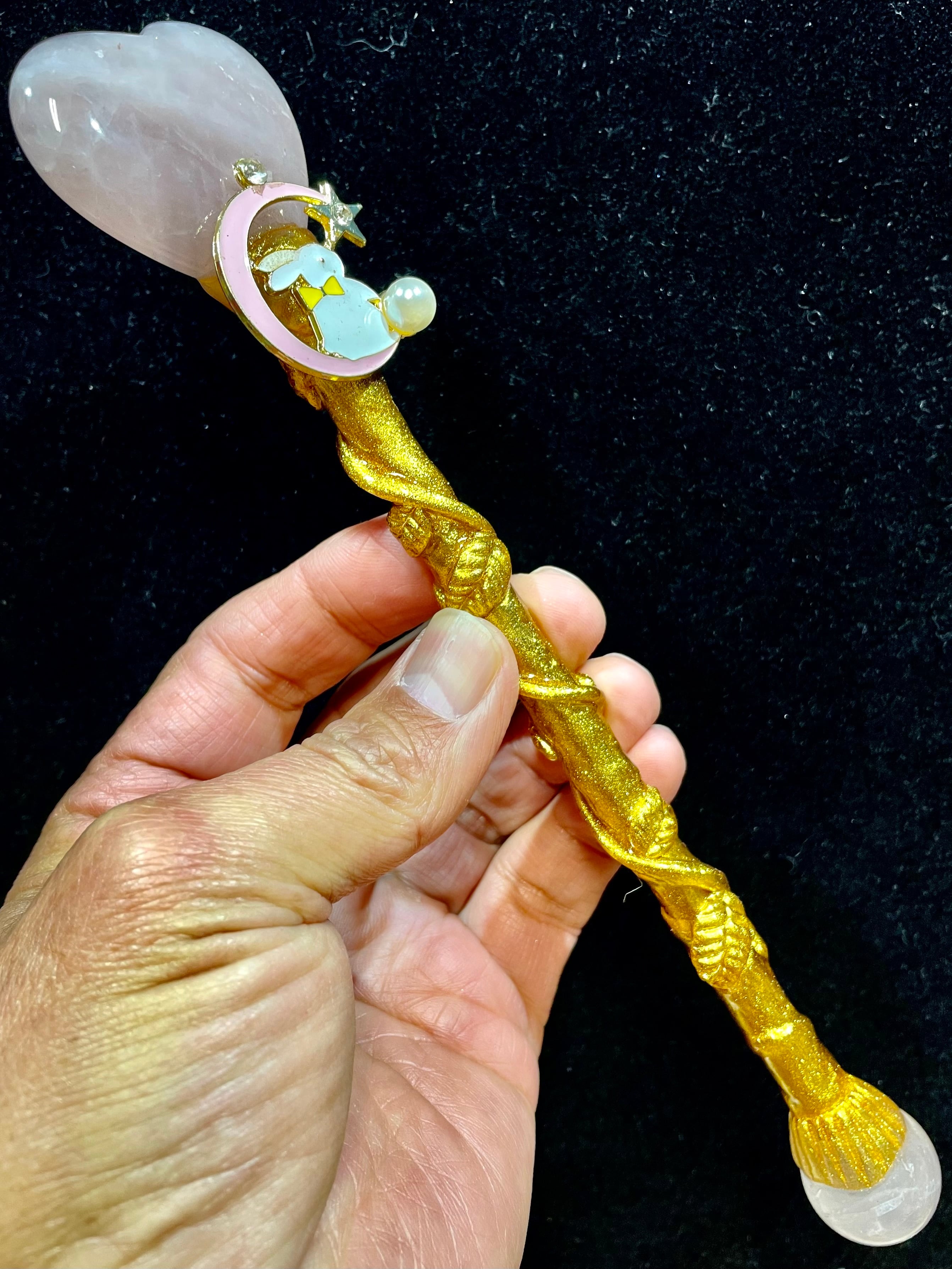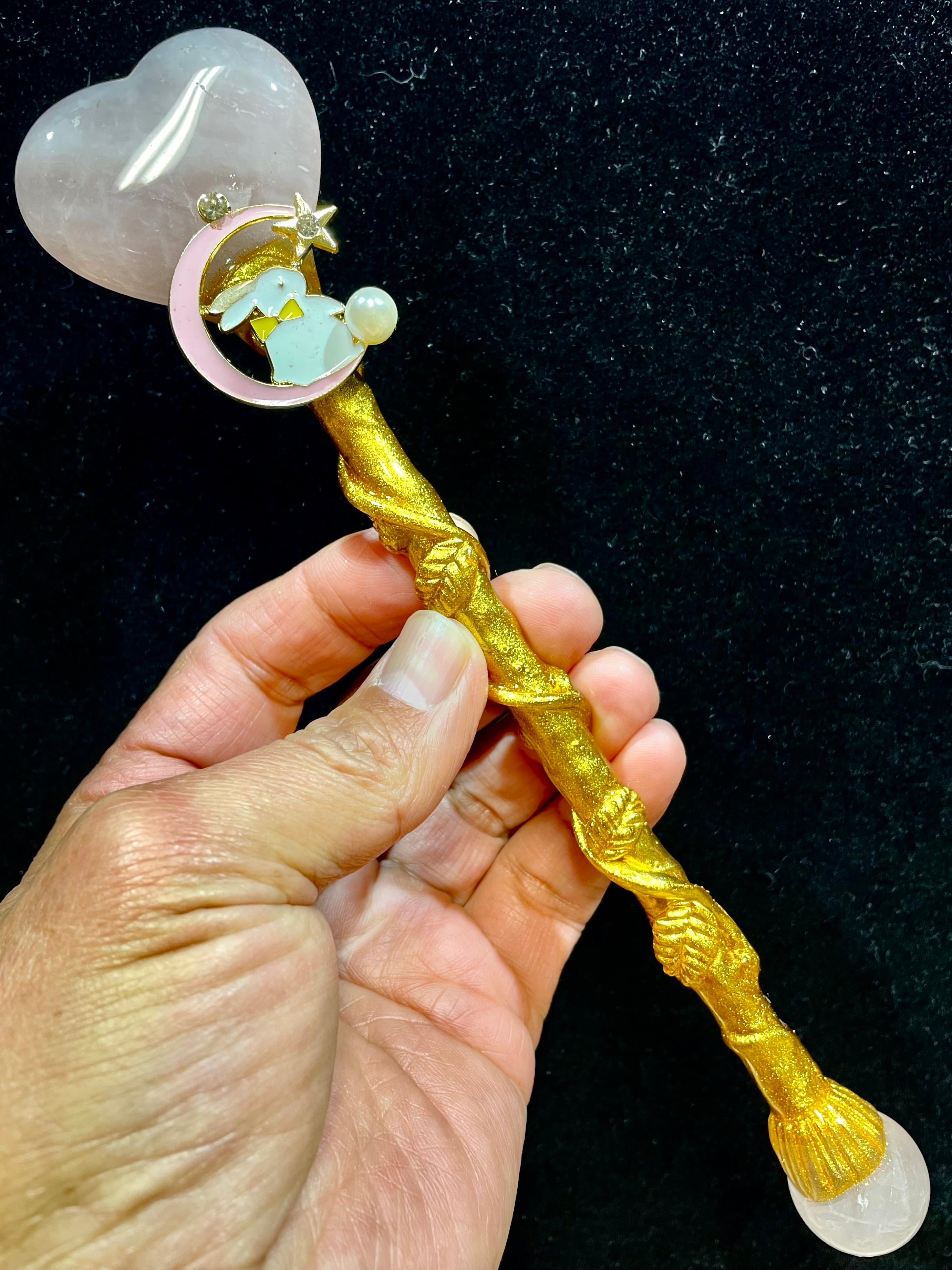 ローズクオーツ等を活用したハンドメイドの「クリスタルワンド」です。