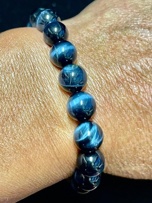 この壮麗なブルータイガーアイ・ブレスレットは、視覚的な美しさと共に、エネルギーのバランスを整える力を持っています。