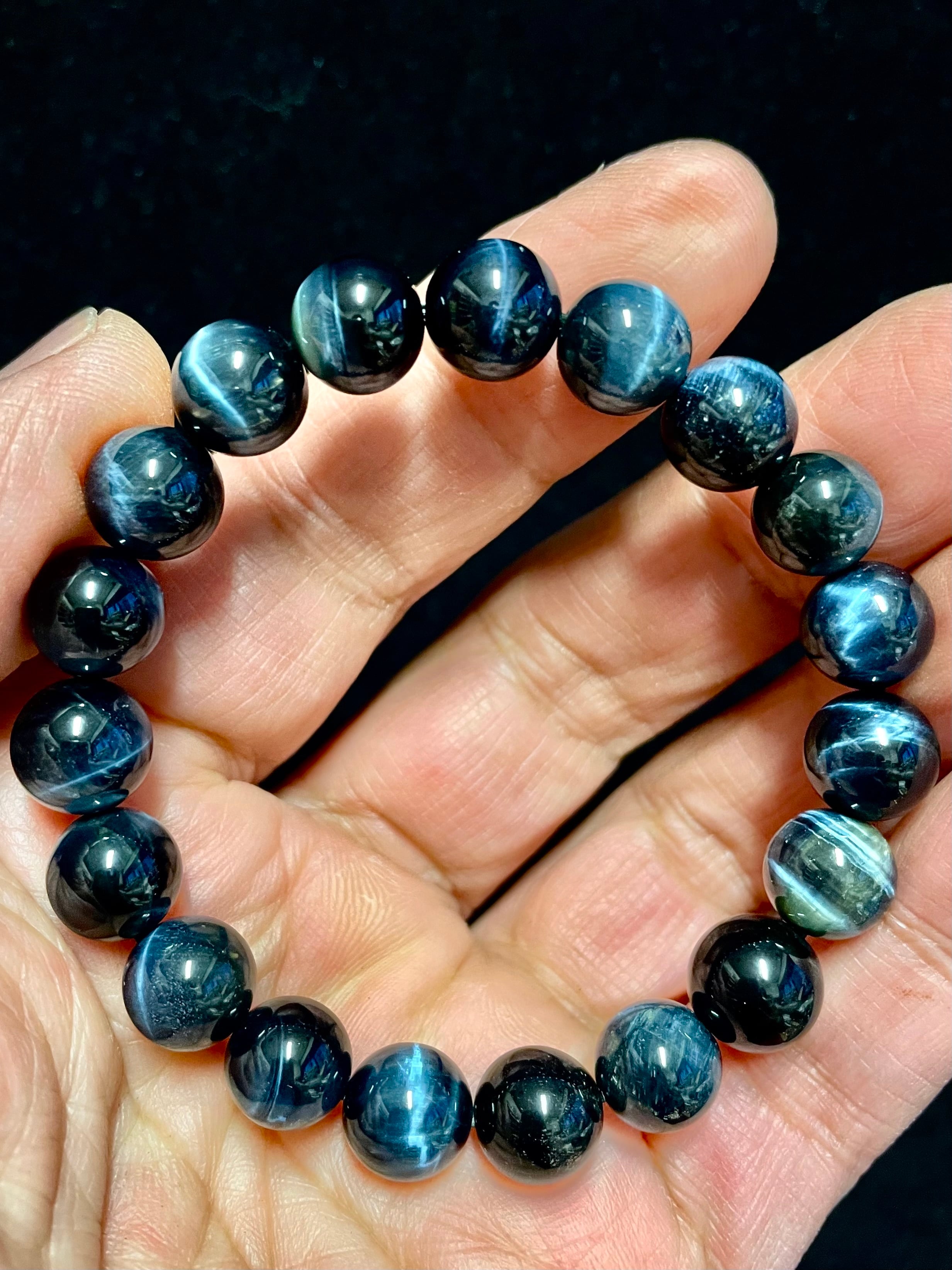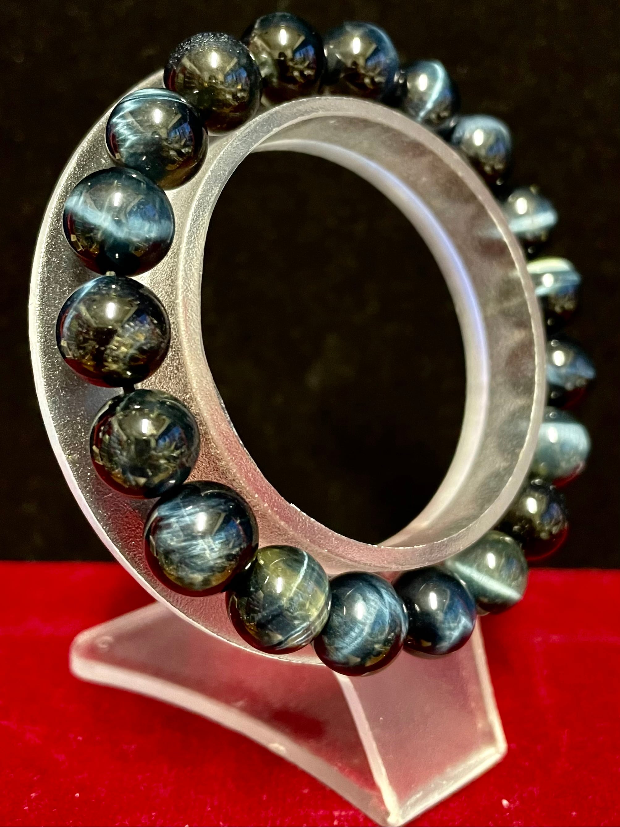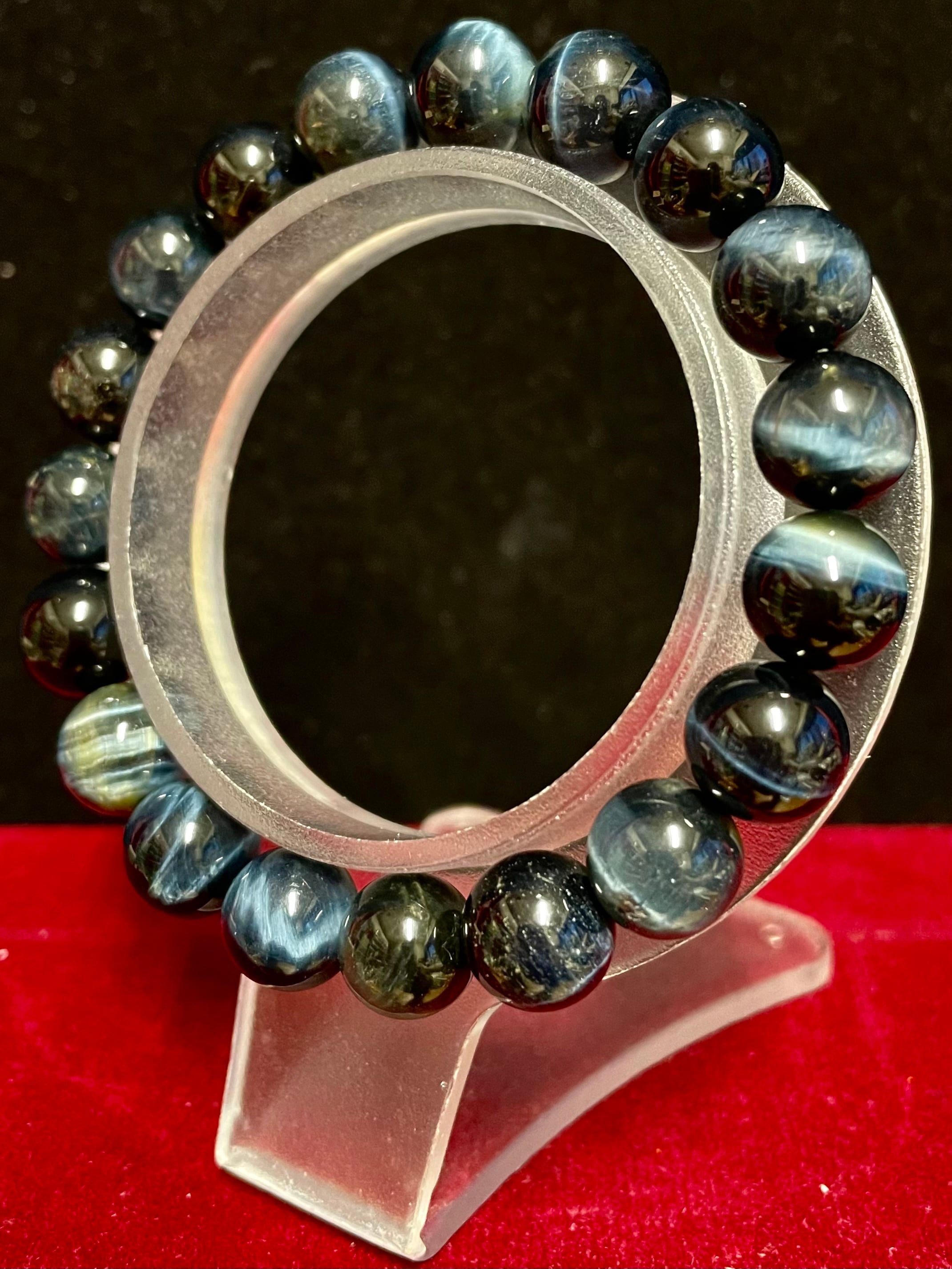 この壮麗なブルータイガーアイ・ブレスレットは、視覚的な美しさと共に、エネルギーのバランスを整える力を持っています。
