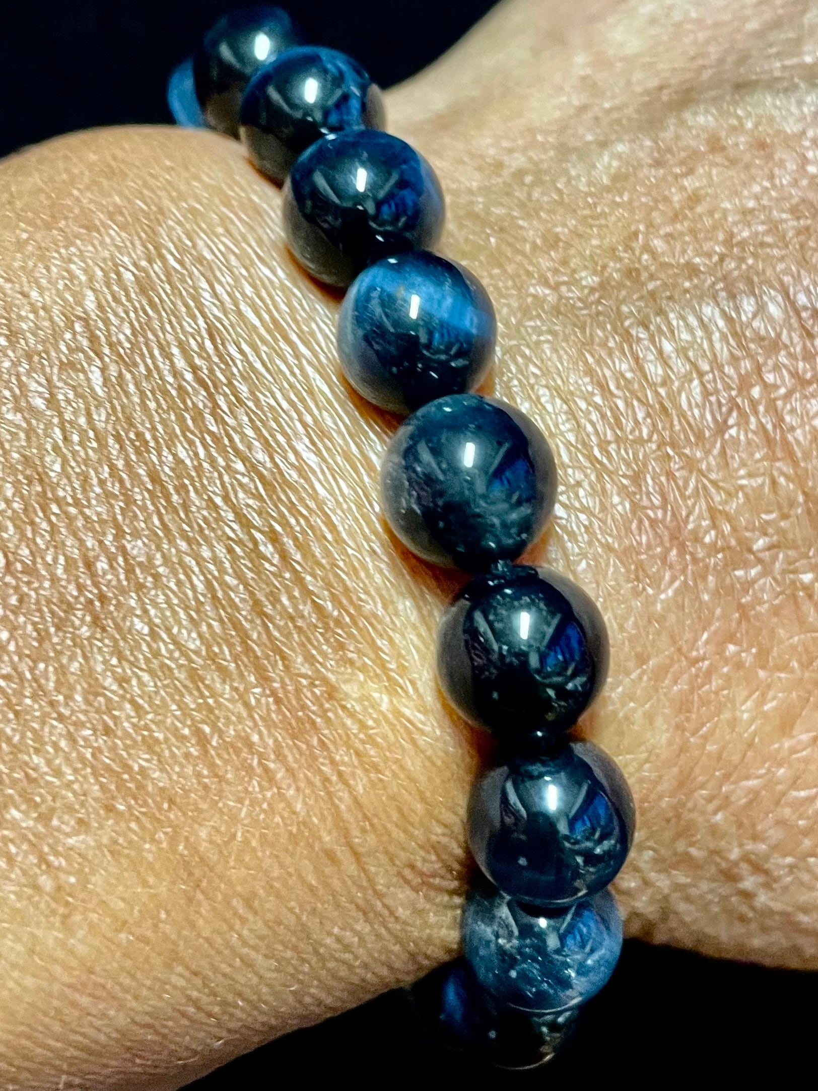 この壮麗なブルータイガーアイ・ブレスレットは、視覚的な美しさと共に、エネルギーのバランスを整える力を持っています。