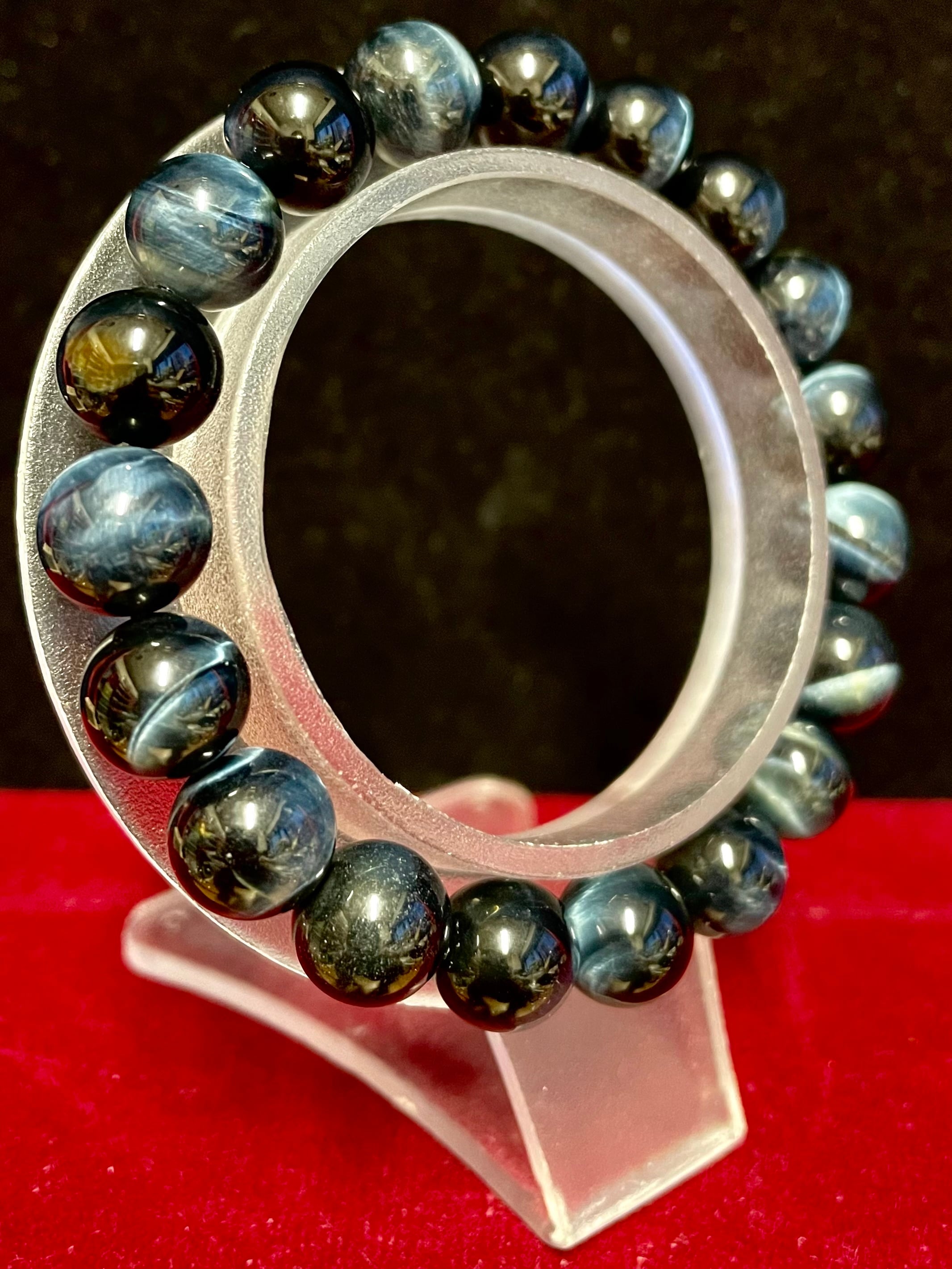 この壮麗なブルータイガーアイ・ブレスレットは、視覚的な美しさと共に、エネルギーのバランスを整える力を持っています。