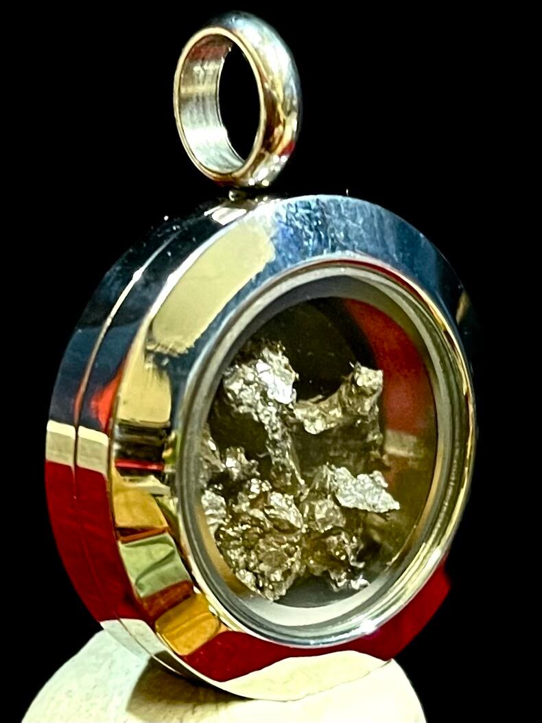 アニメ「鬼滅の刃」によって一般的に知られるようになった「玉鋼」原石を活用した、ステンレス製ペンダントです。