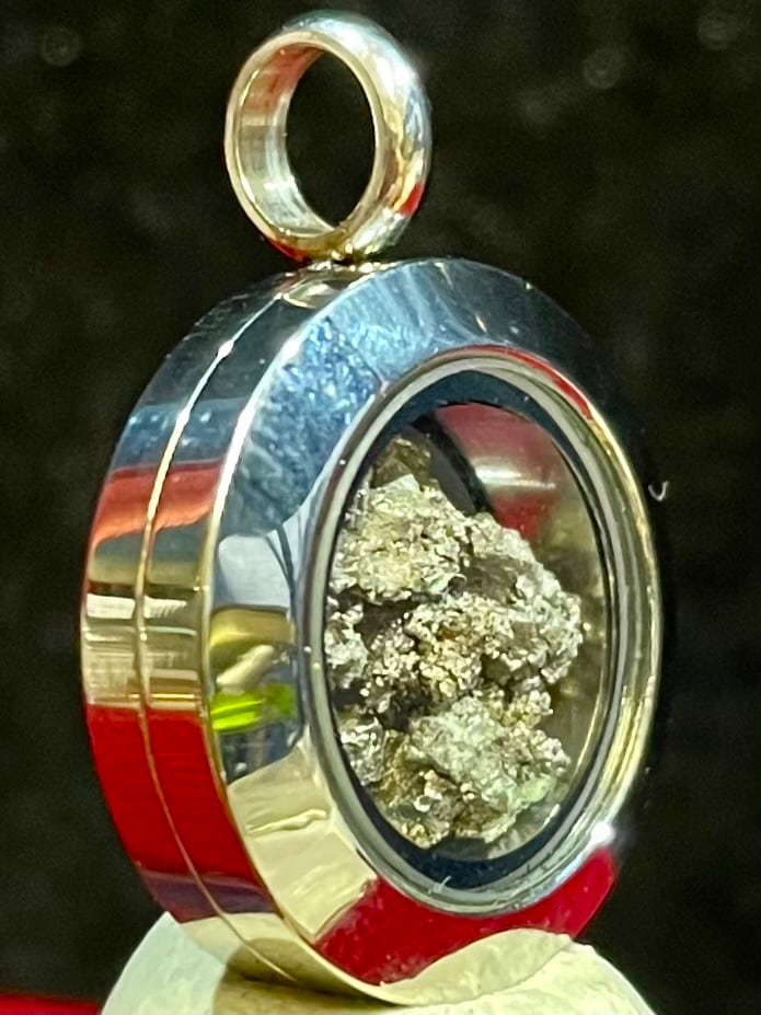アニメ「鬼滅の刃」によって一般的に知られるようになった「玉鋼」原石を活用した、ステンレス製ペンダントです。
