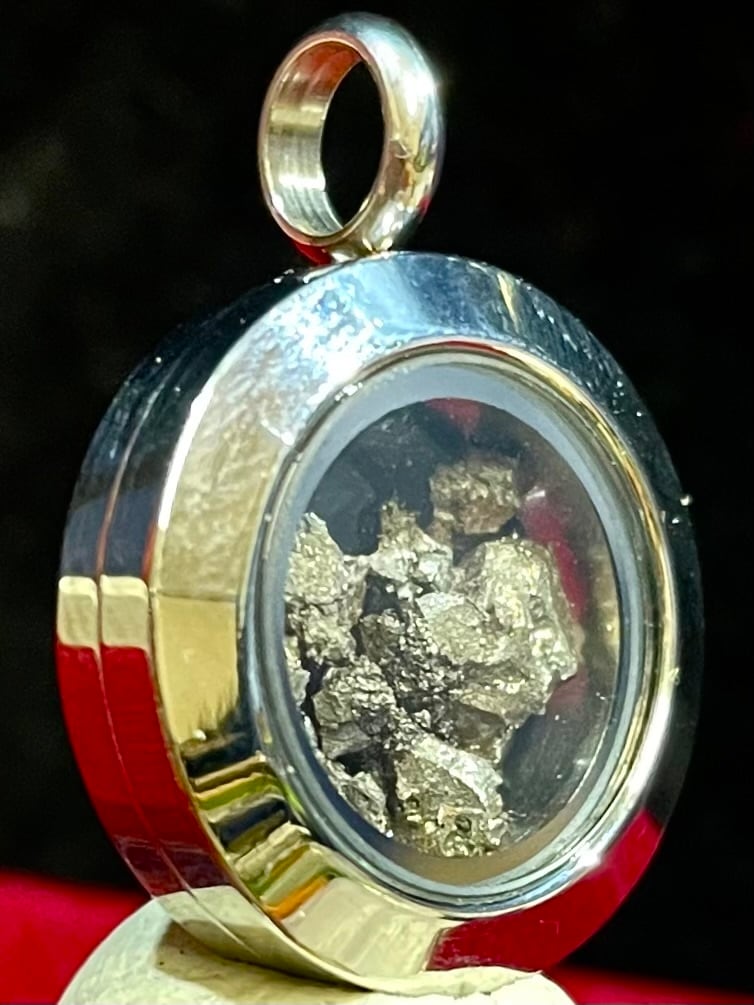 アニメ「鬼滅の刃」によって一般的に知られるようになった「玉鋼」原石を活用した、ステンレス製ペンダントです。