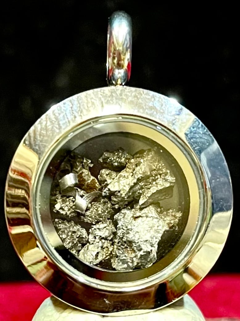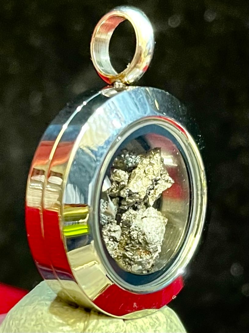 アニメ「鬼滅の刃」によって一般的に知られるようになった「玉鋼」原石を活用した、ステンレス製ペンダントです。
