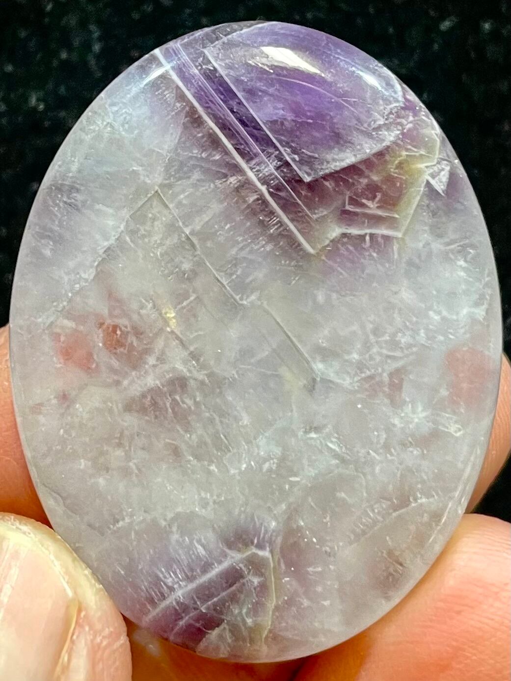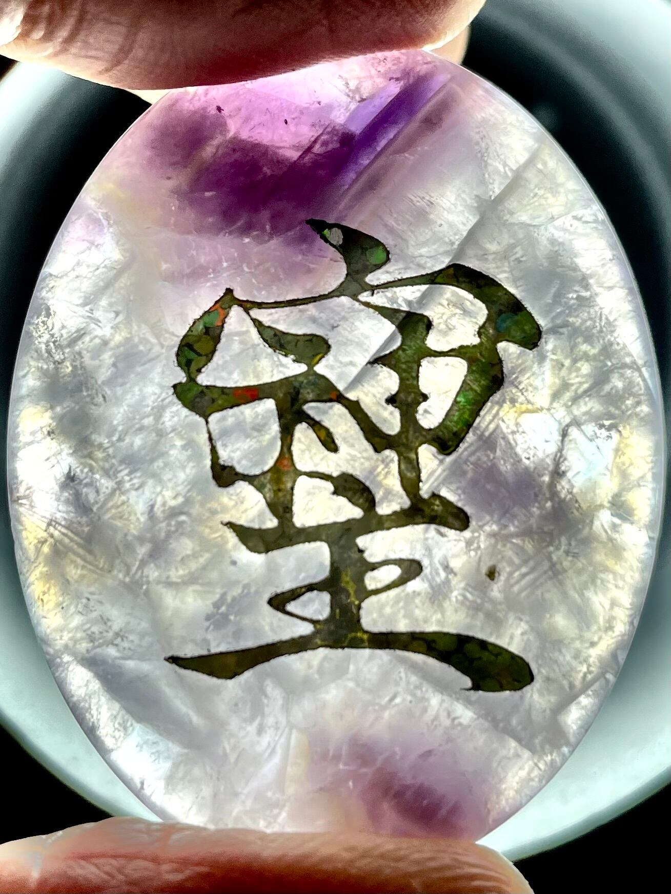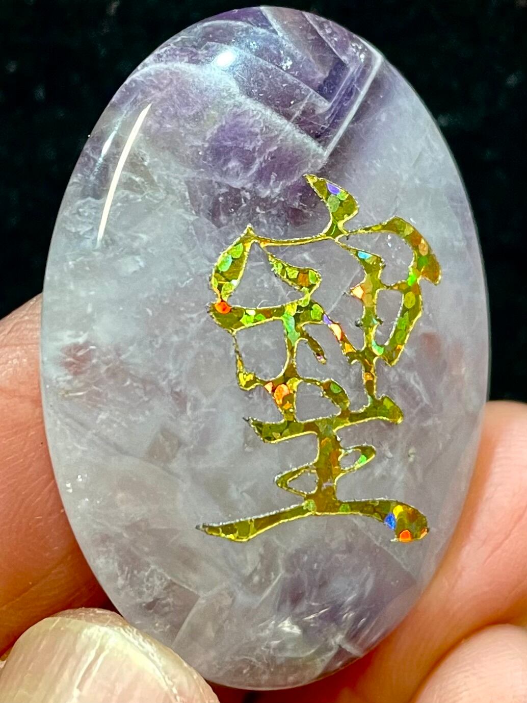 鮮やかなブラジル産アメジストに「そしじ」レインボー・ラメ入り高品質ステッカー(無防水)を貼っています。