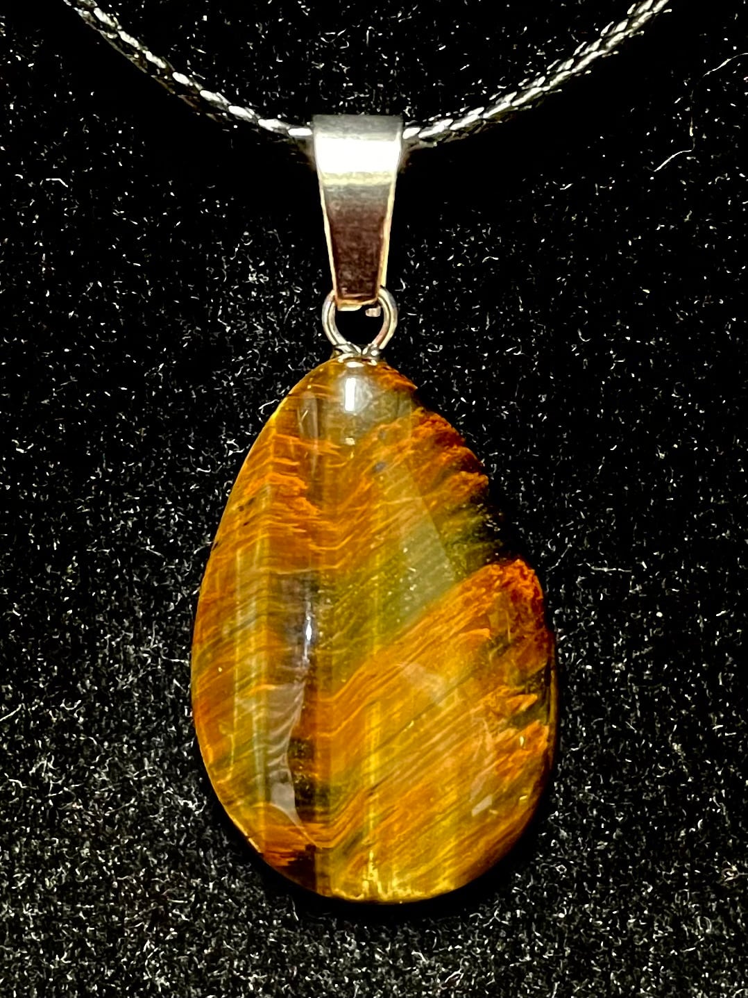 この「タイガー・アイ」ドロップ型PTは、深い色合いと独特の光沢を持つ天然石です。