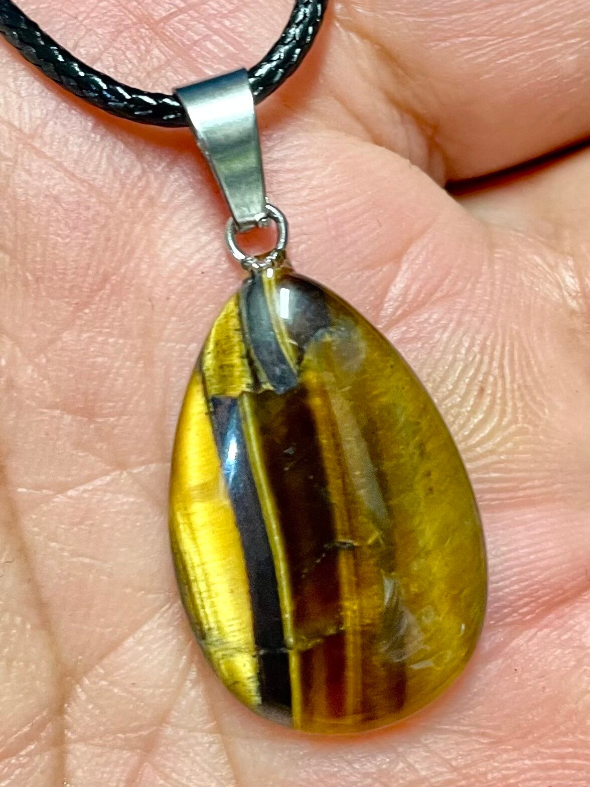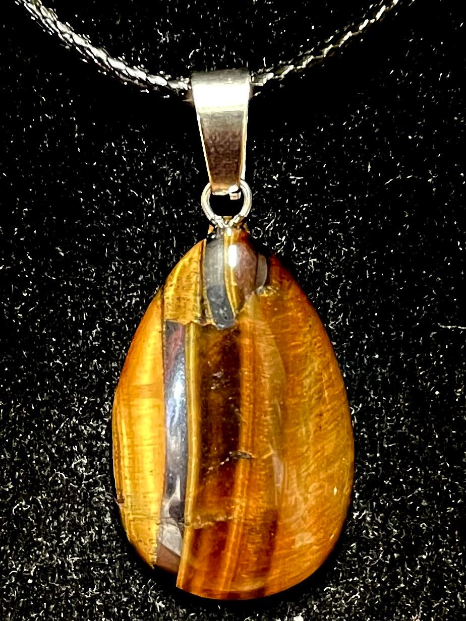 この「タイガー・アイ」ドロップ型PTは、深い色合いと独特の光沢を持つ天然石です。