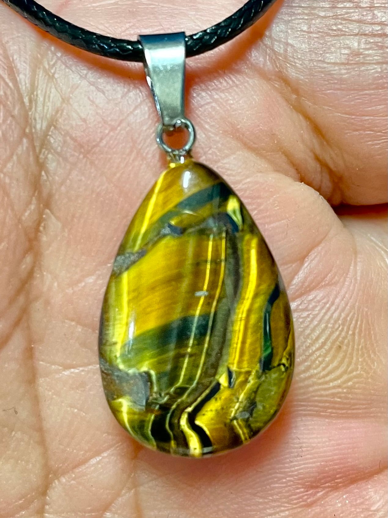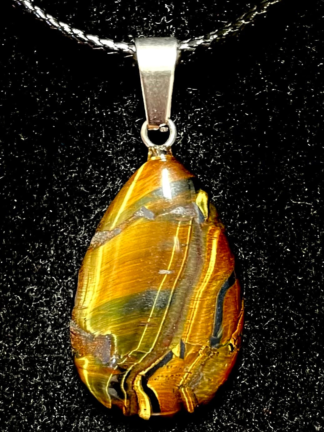 この「タイガー・アイ」ドロップ型PTは、深い色合いと独特の光沢を持つ天然石です。