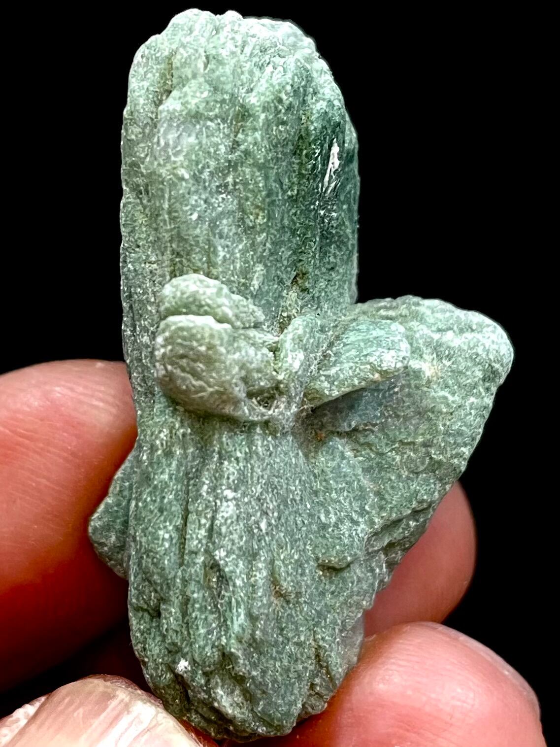 この「スティルバイト原石」は、美しいグリーンの色合いと独特な形状が魅力の天然石です。優雅なフォルムは、見る者を惹きつける存在感を漂わせます。