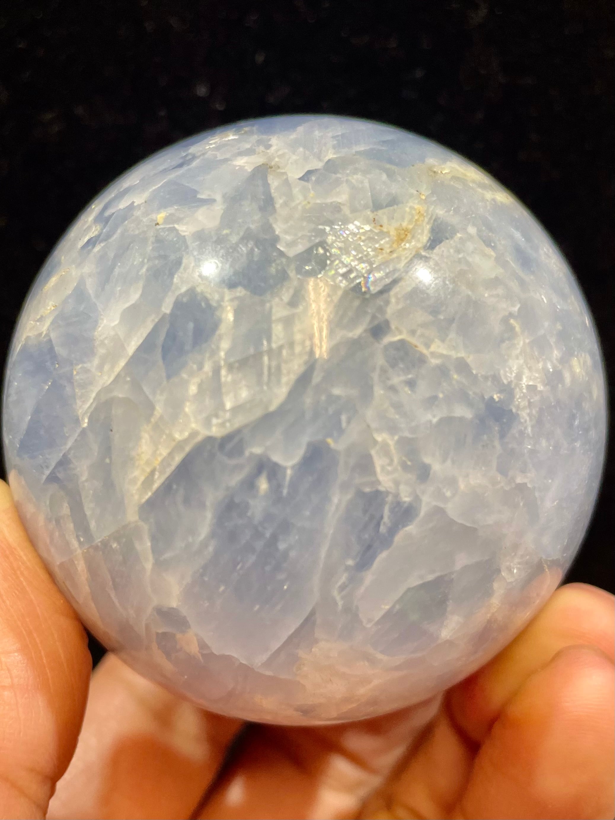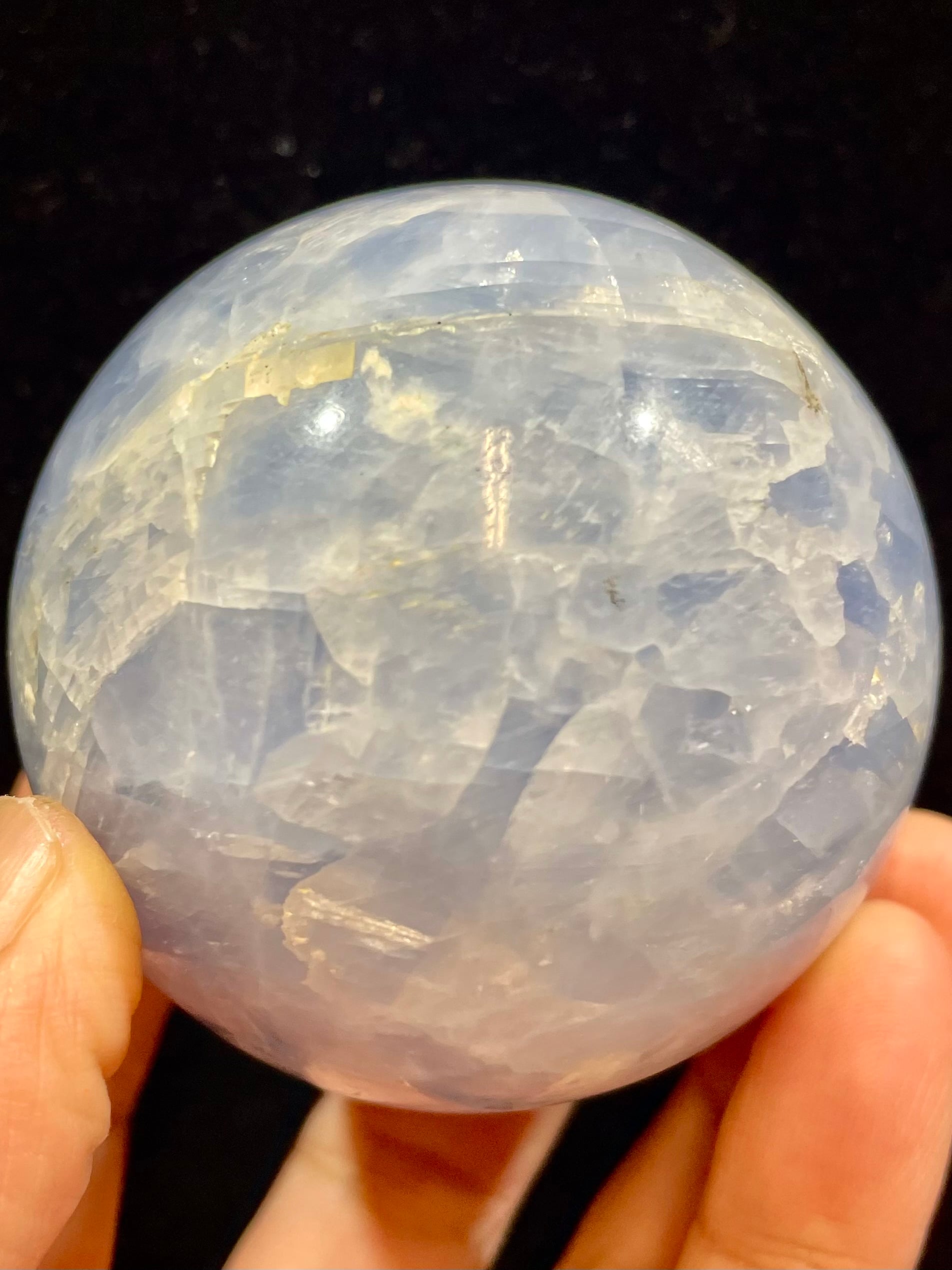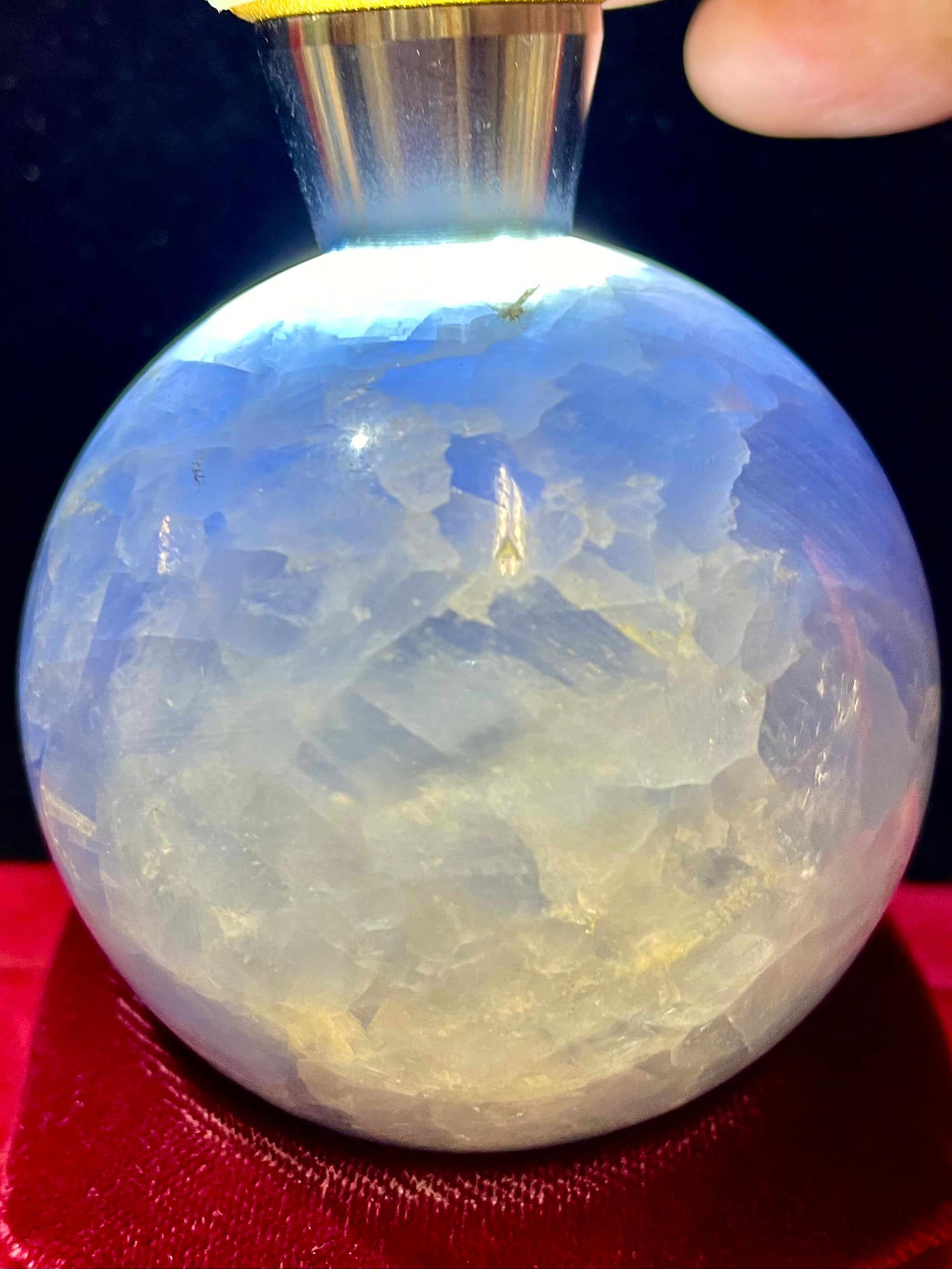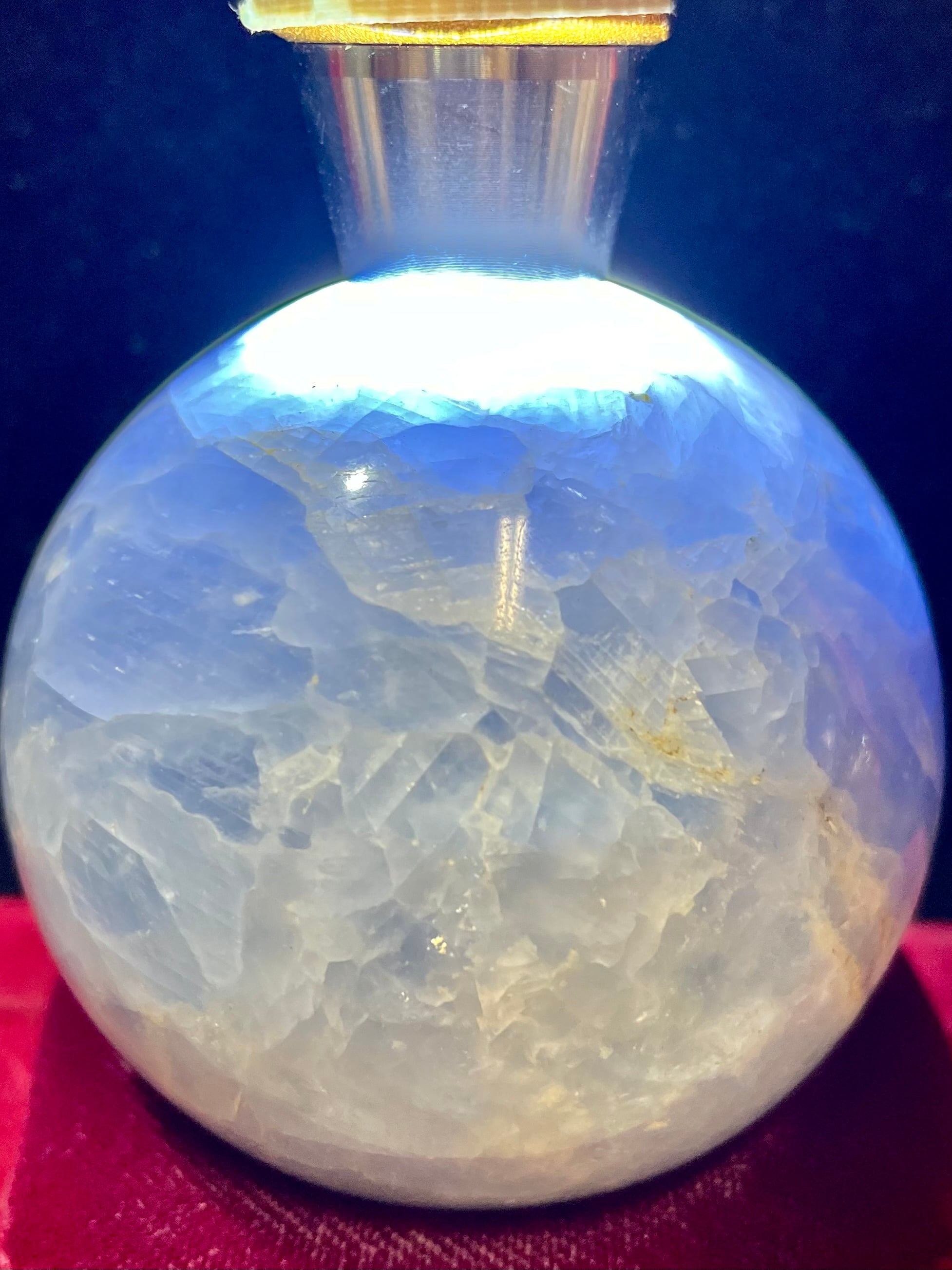 「ブルーカルサイト」スフィアは、自然が長い時間をかけて育んだ美しい結晶で、深い青色が視覚的にも心にも安らぎをもたらします。