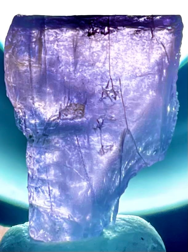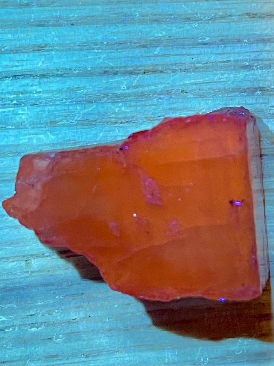 アフガニスタン産パープルスキャポライトは「マリアライト」とも呼ばれ、ブラックライトでオレンジ色に蛍光します。