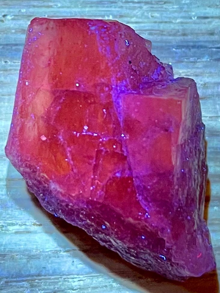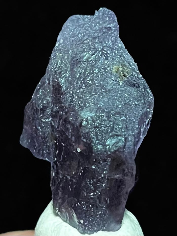 アフガニスタン産パープルスキャポライトは「マリアライト」とも呼ばれ、ブラックライトでオレンジ色に蛍光します。
