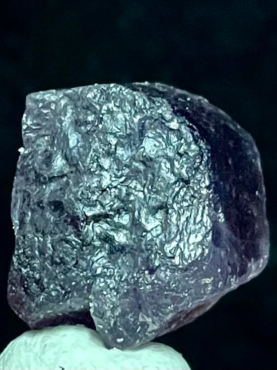 アフガニスタン産パープルスキャポライトは「マリアライト」とも呼ばれ、ブラックライトでオレンジ色に蛍光します。