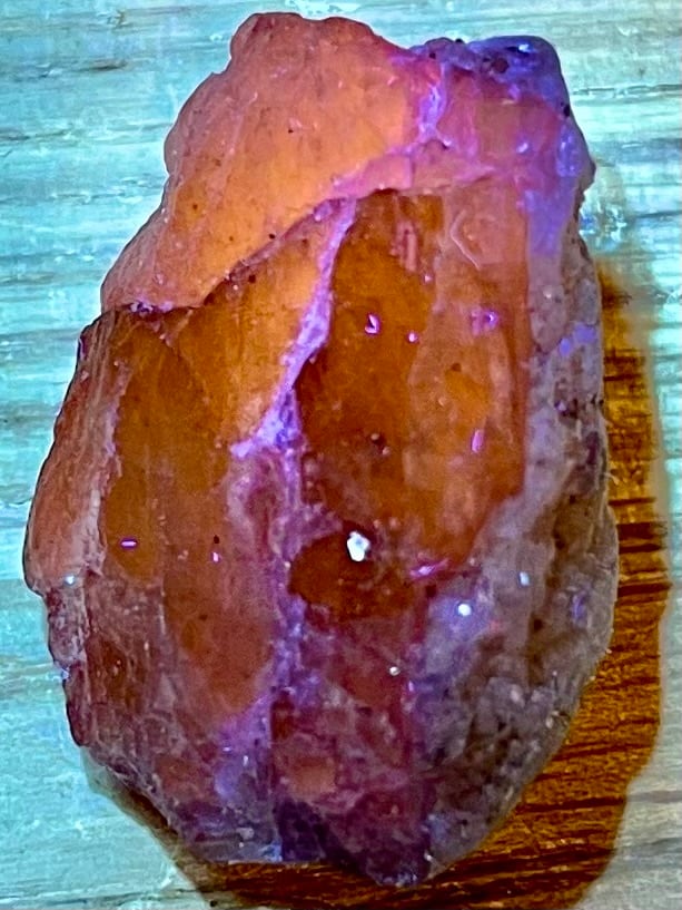 アフガニスタン産パープルスキャポライトは「マリアライト」とも呼ばれ、ブラックライトでオレンジ色に蛍光します。