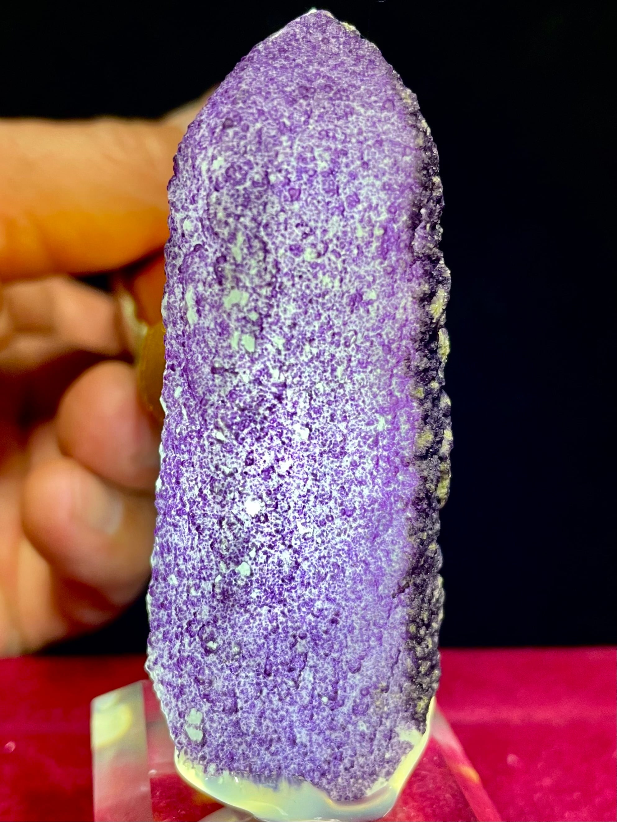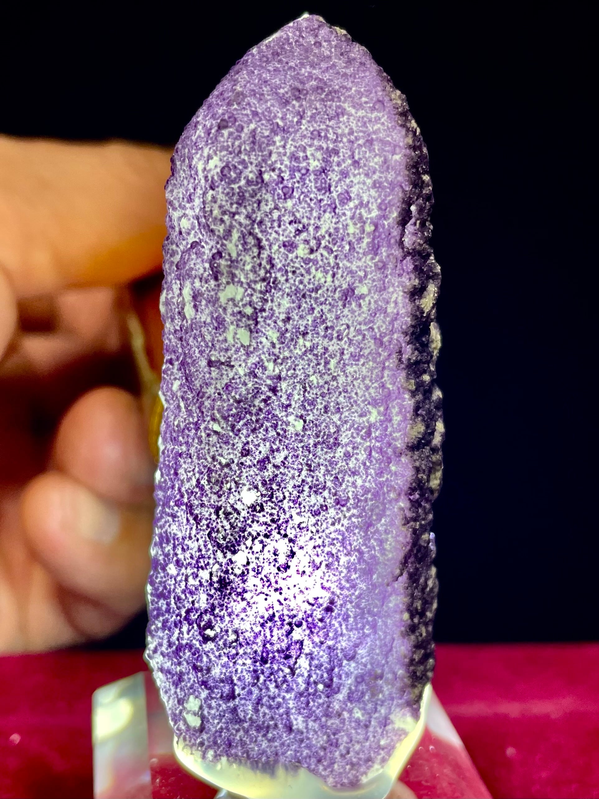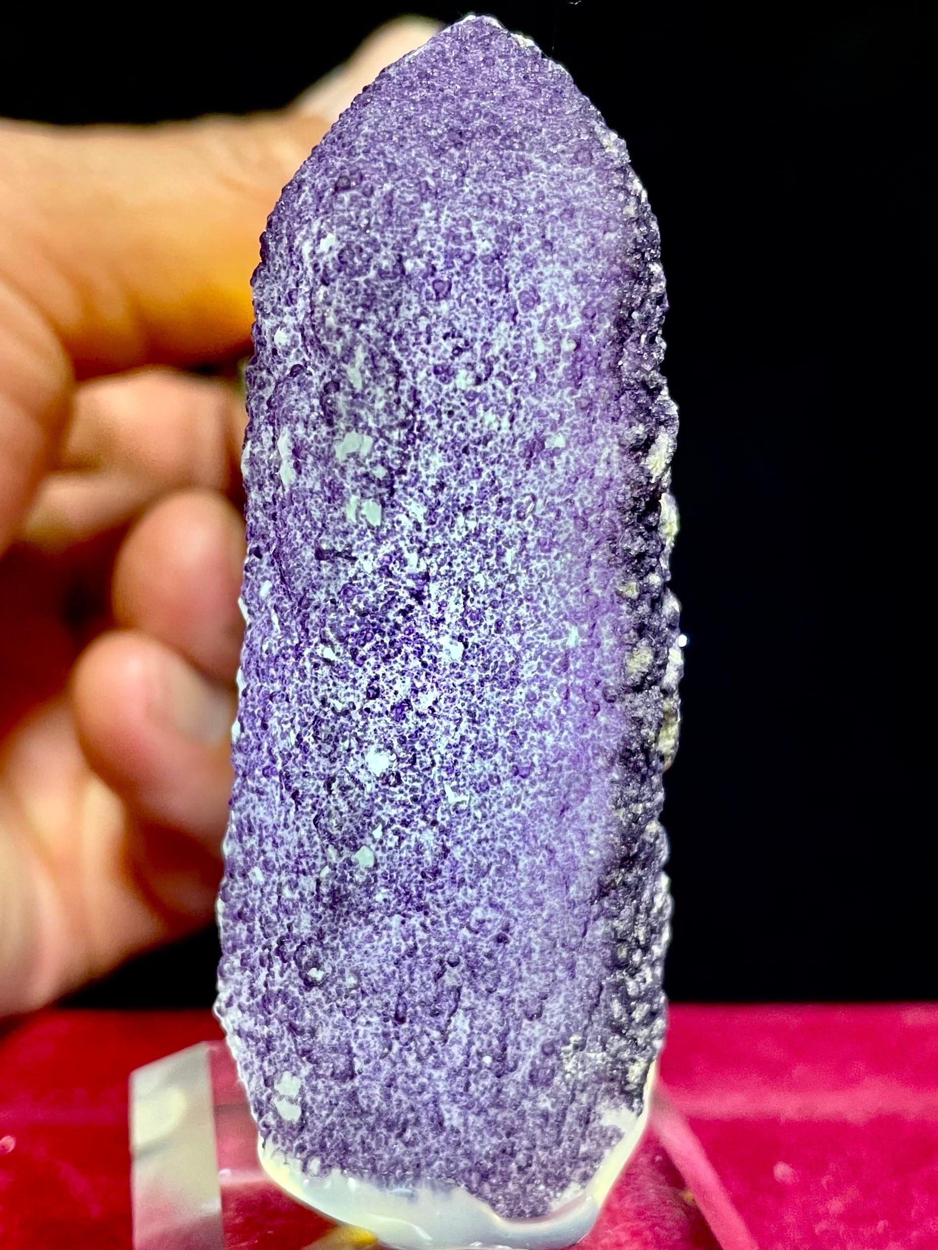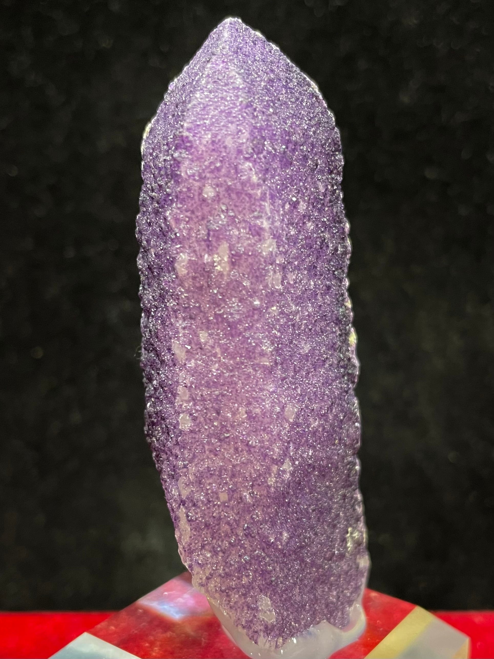 内モンゴル・ハンガン鉱山産の「パープル・フローライトonクオーツ」は、その高貴で美しい紫色と独特の質感で多くの人々を魅了します。この原石は、自然が作り出したまさにアートのような存在です。