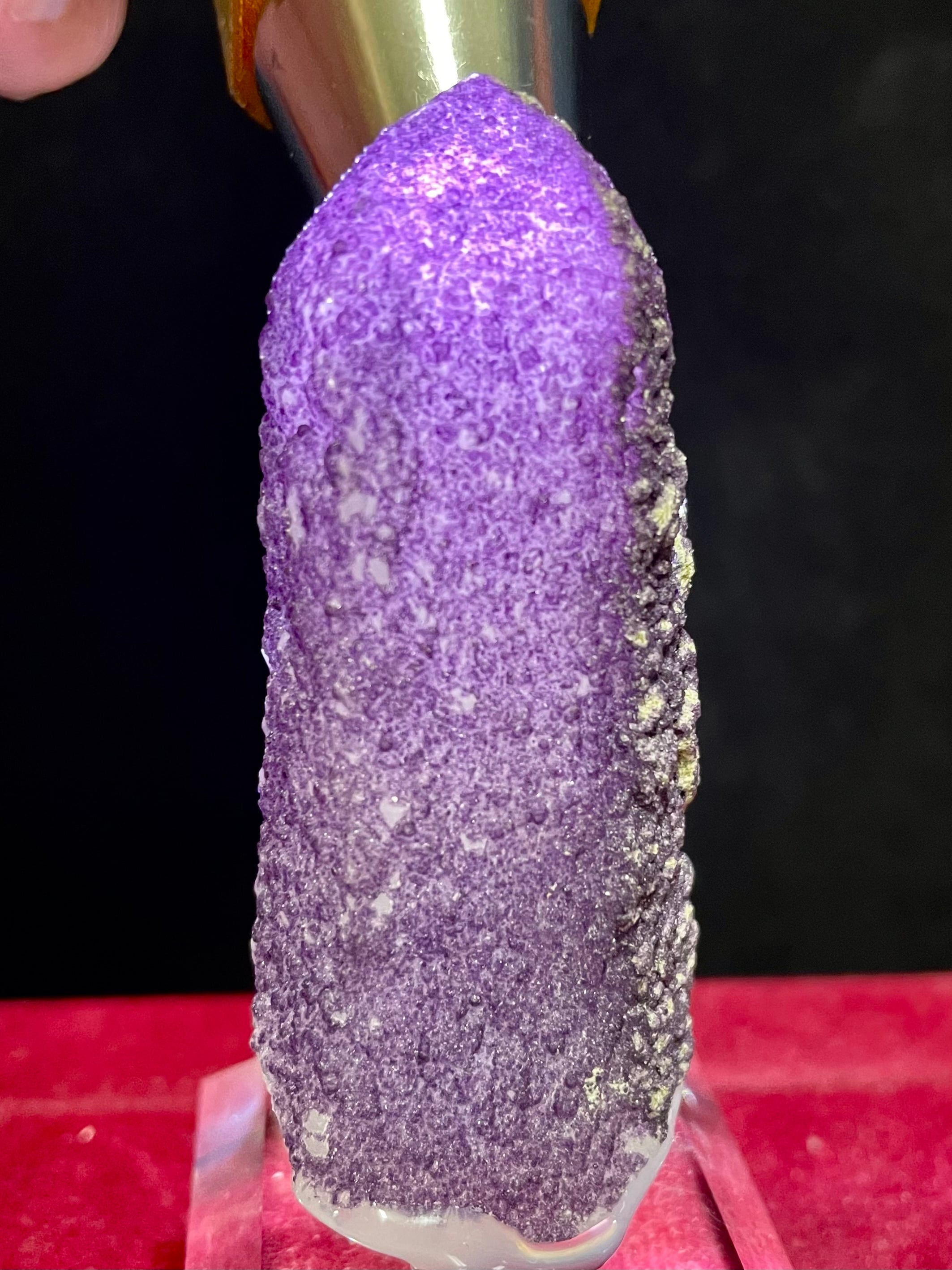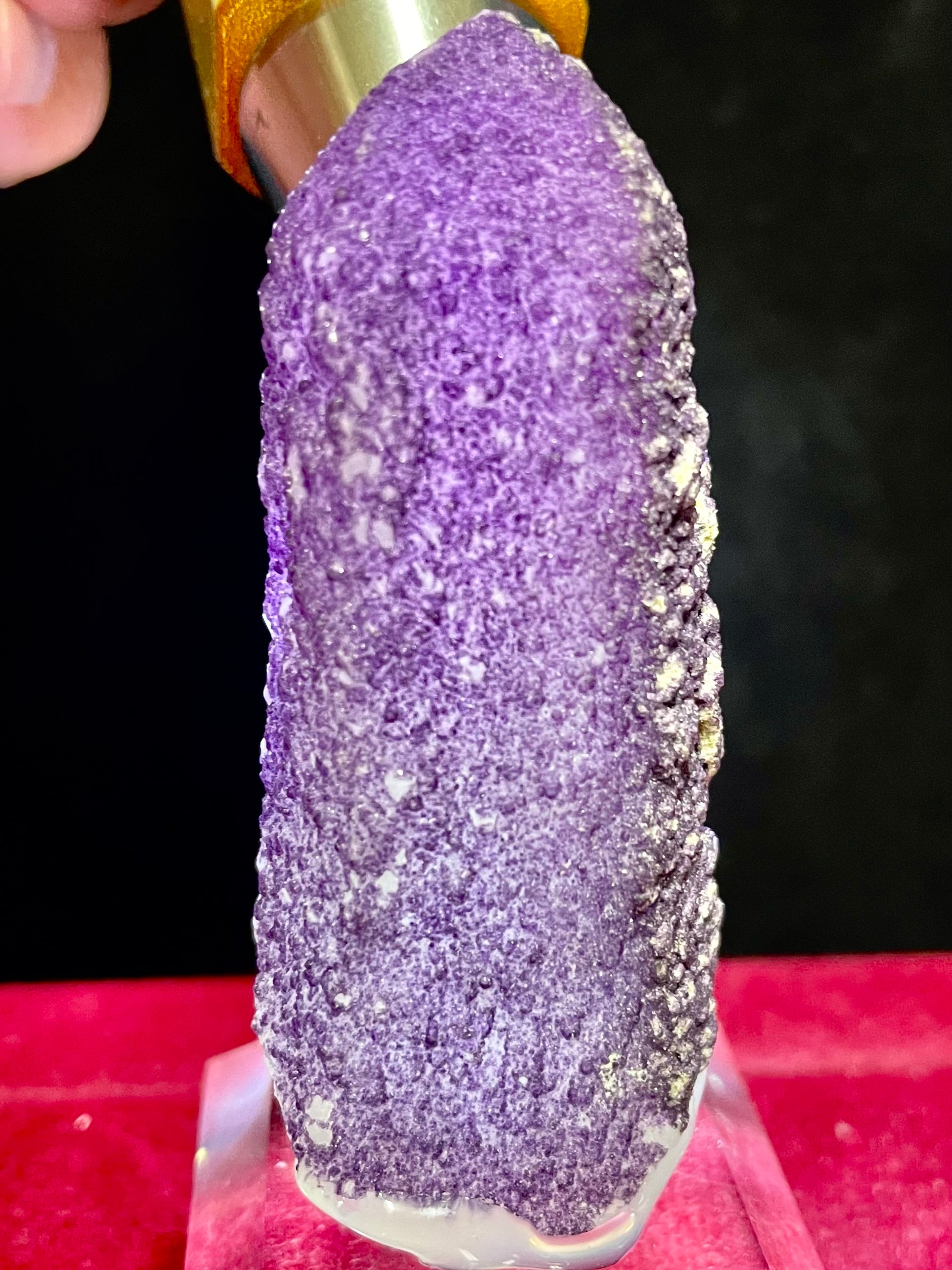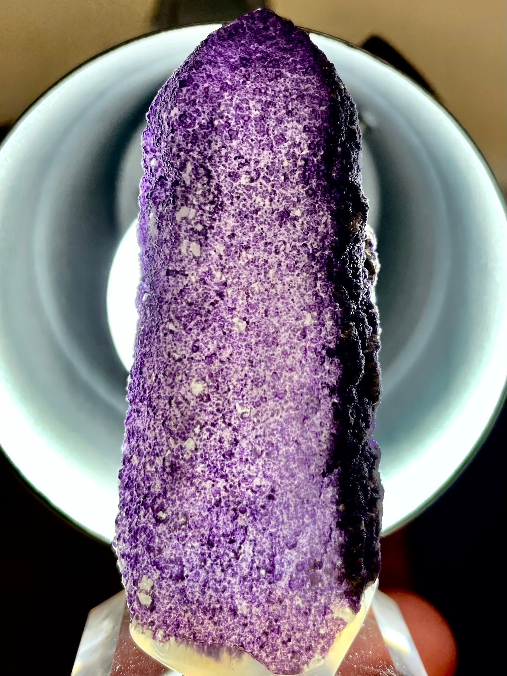 内モンゴル・ハンガン鉱山産の「パープル・フローライトonクオーツ」は、その高貴で美しい紫色と独特の質感で多くの人々を魅了します。この原石は、自然が作り出したまさにアートのような存在です。