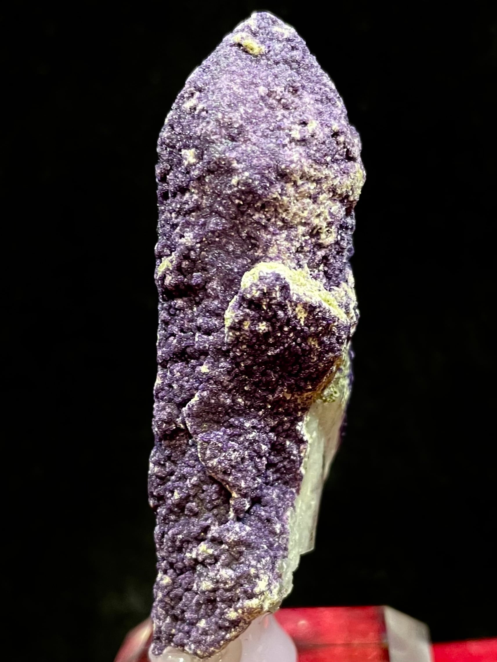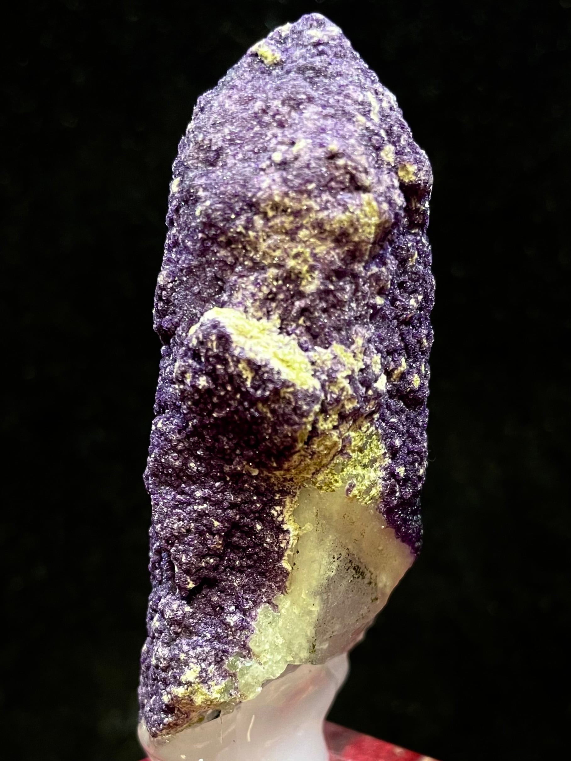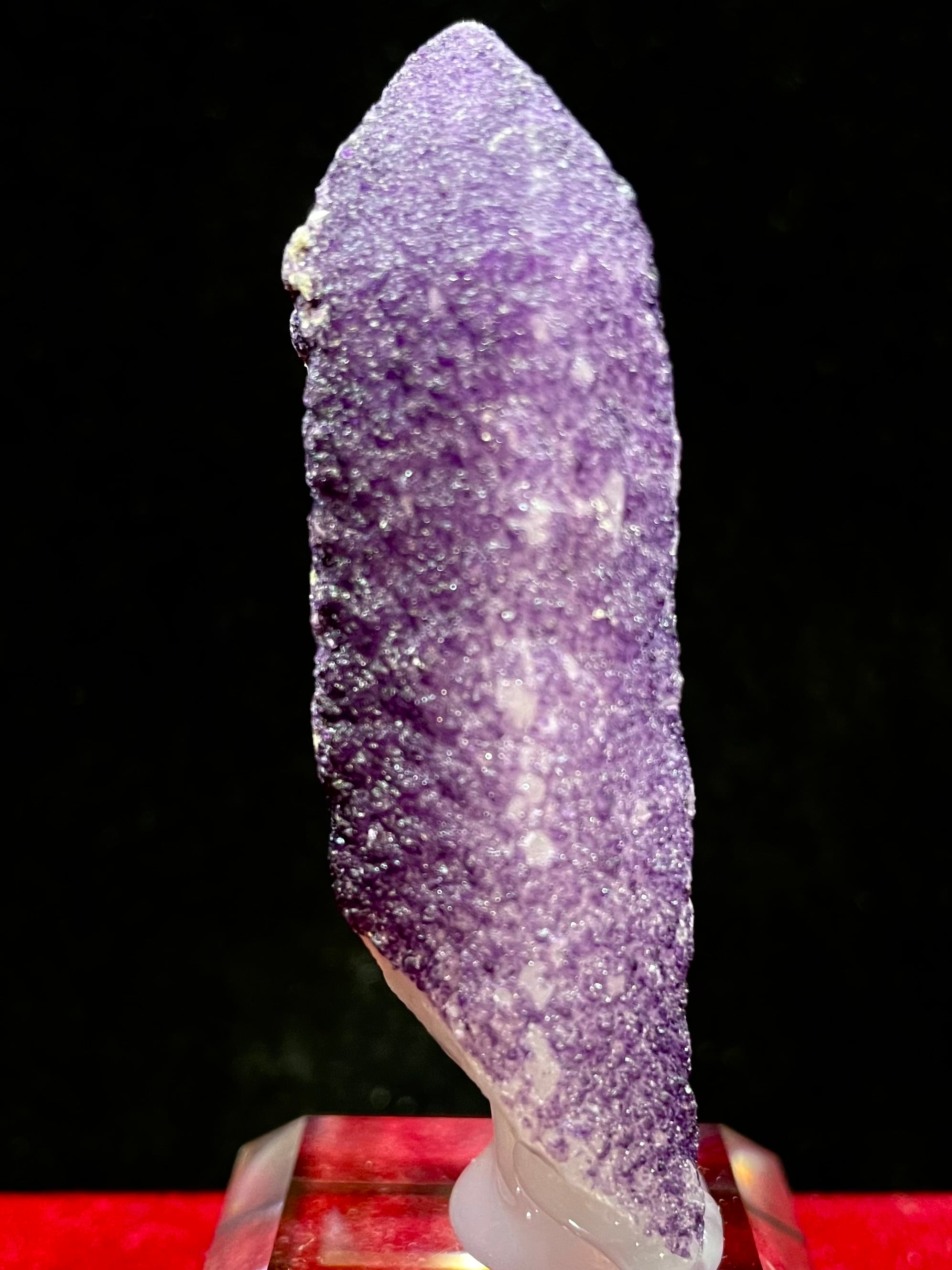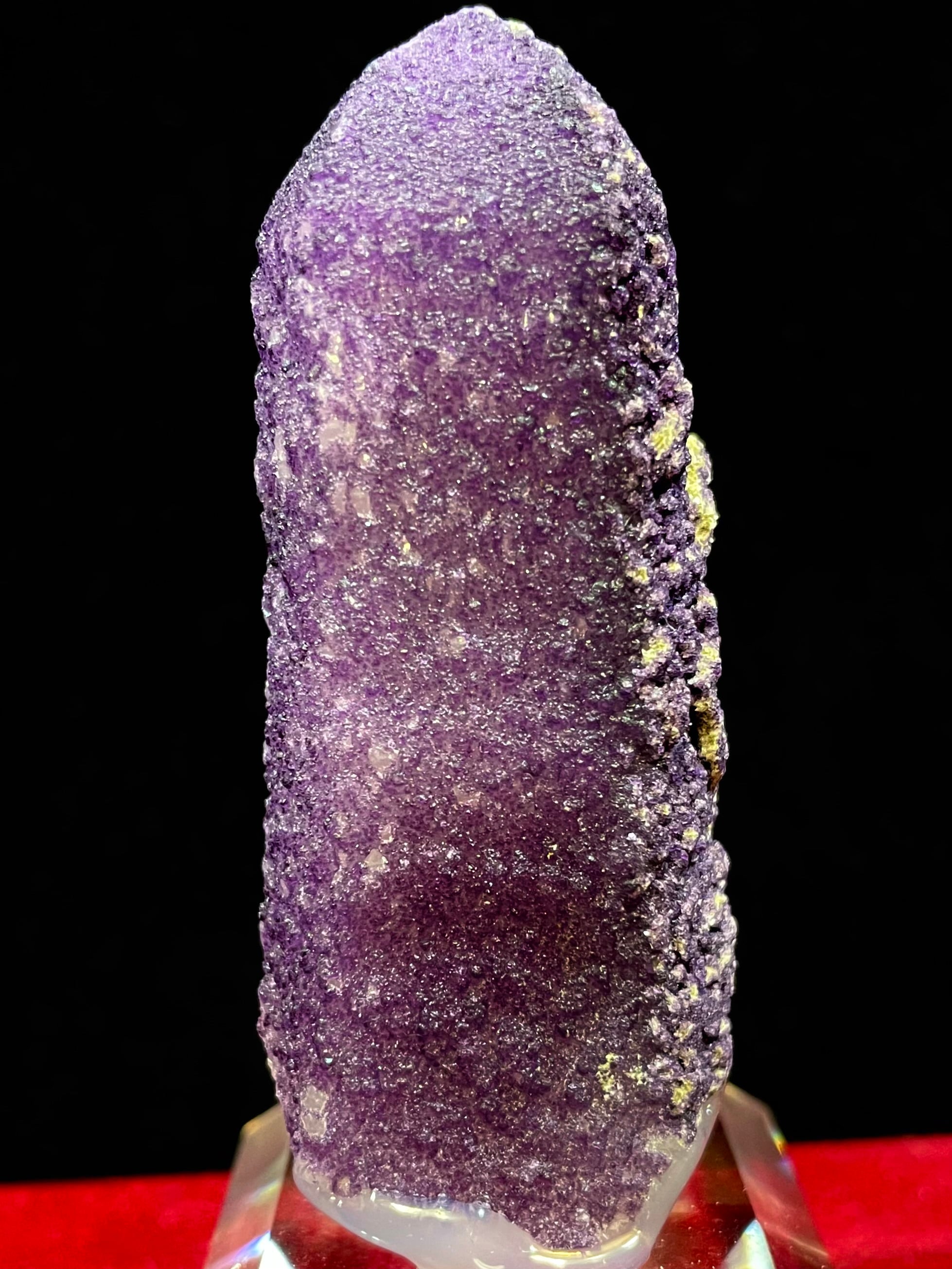 内モンゴル・ハンガン鉱山産の「パープル・フローライトonクオーツ」は、その高貴で美しい紫色と独特の質感で多くの人々を魅了します。この原石は、自然が作り出したまさにアートのような存在です。