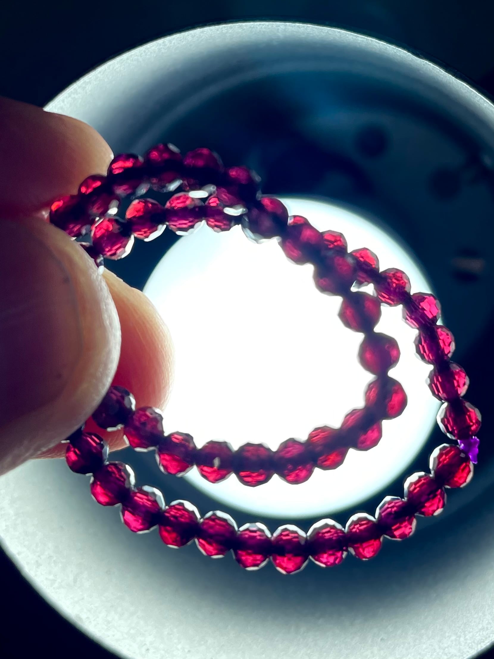 2) 超クリア濃色!モザンビーク産「クリア・ガーネット」ブレスレットAAAAA(内周158mm)