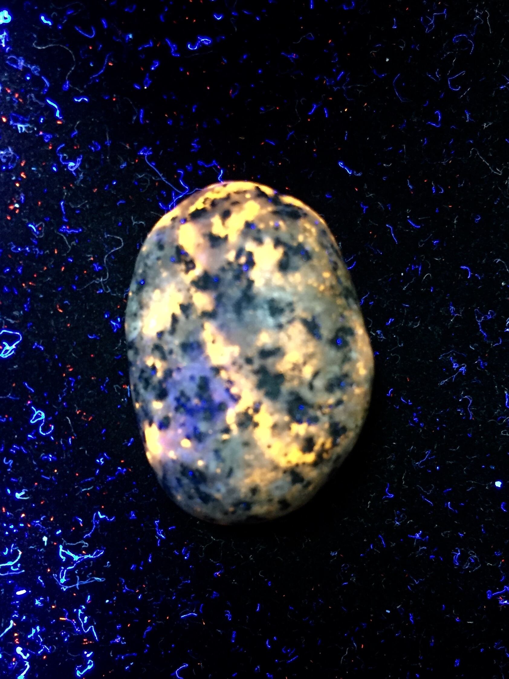 蛍光性方ソーダ石含有閃長岩(syenite clasts containing fluorescent sodalite)