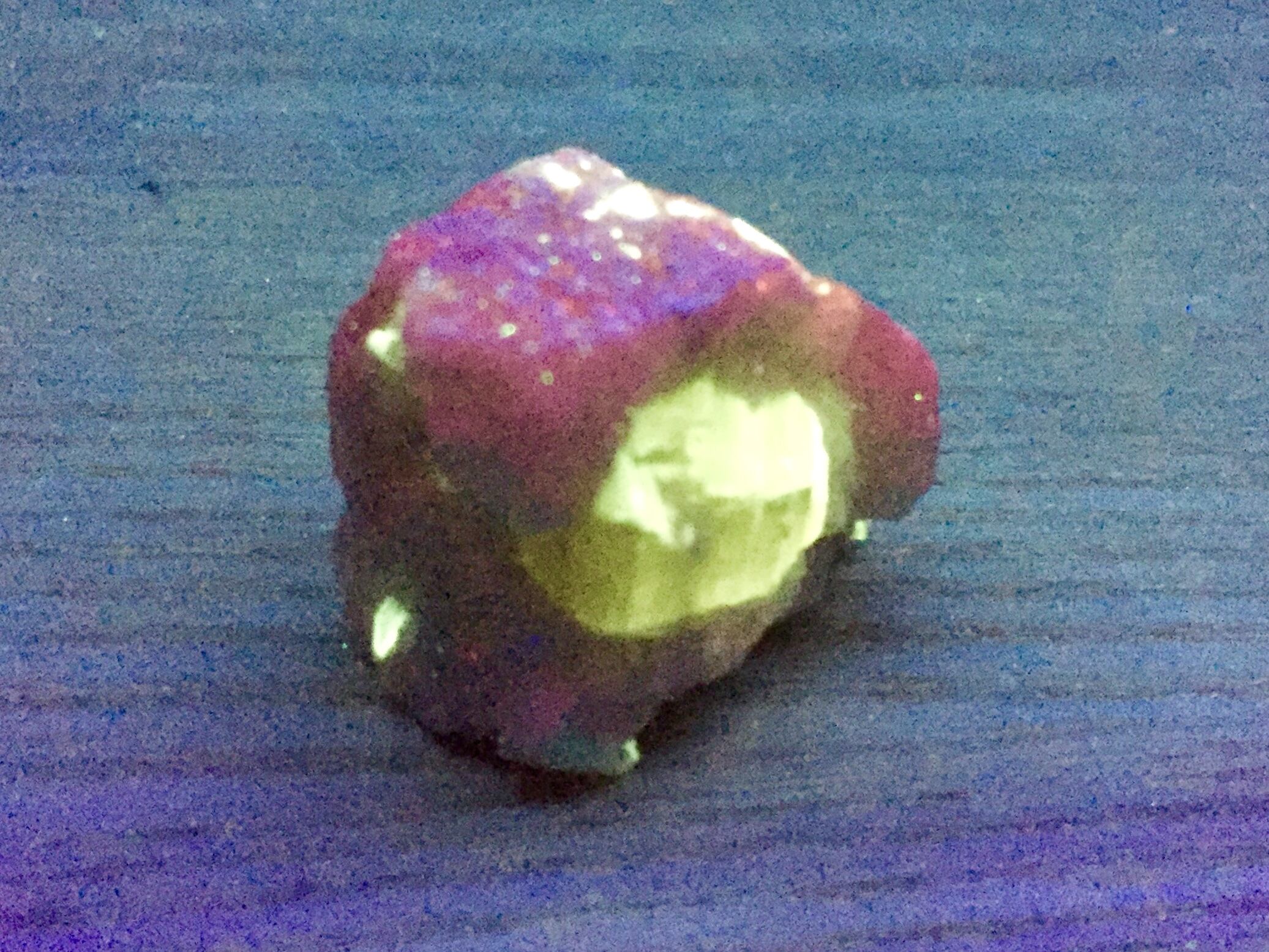 この石は紫外線の「短波」ライトを当てると想像以上の思いも寄らない「輝き」で蛍光します。
