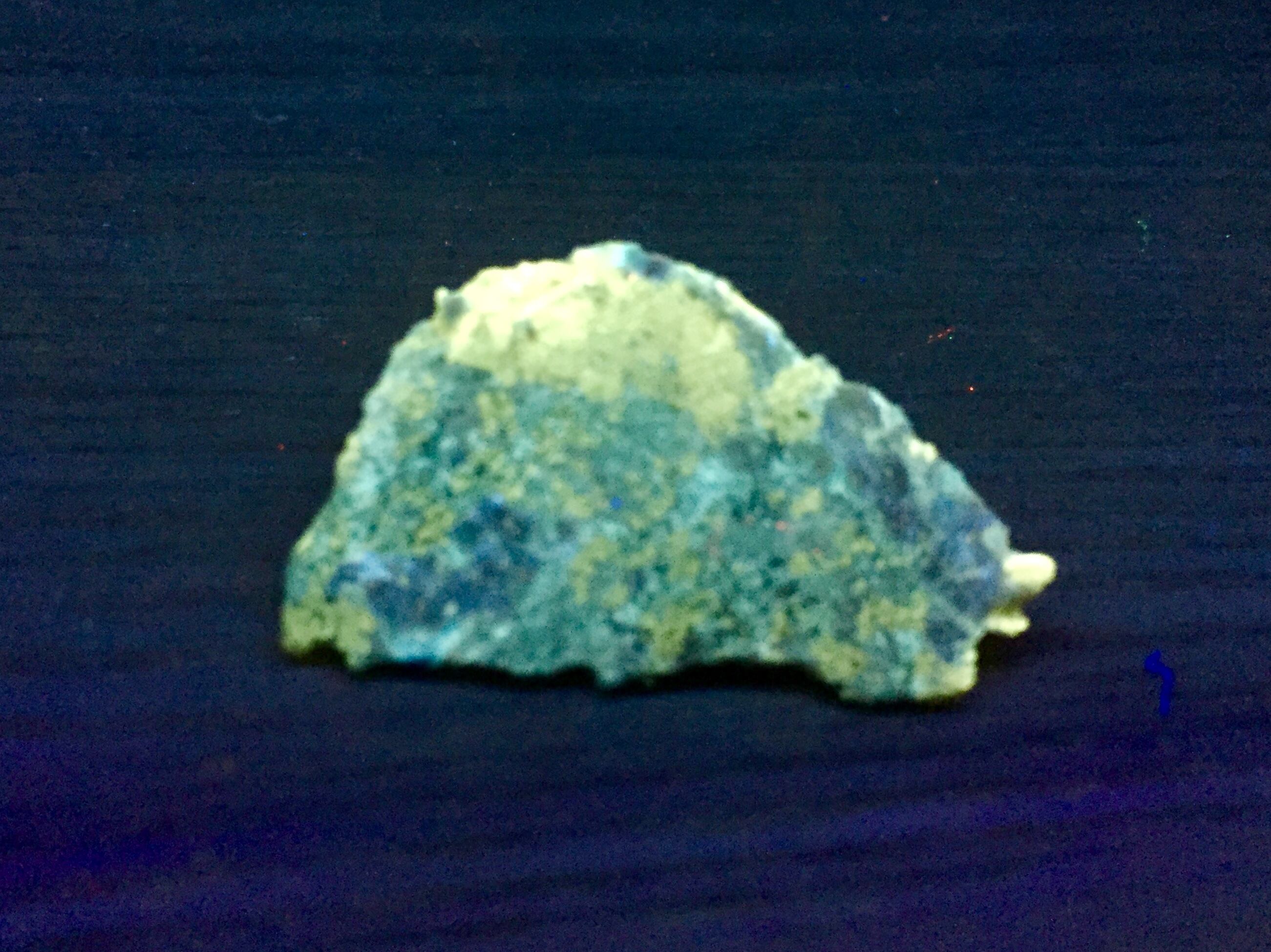 この石は紫外線の「短波」ライトを当てると想像以上の思いも寄らない「輝き」で蛍光します。