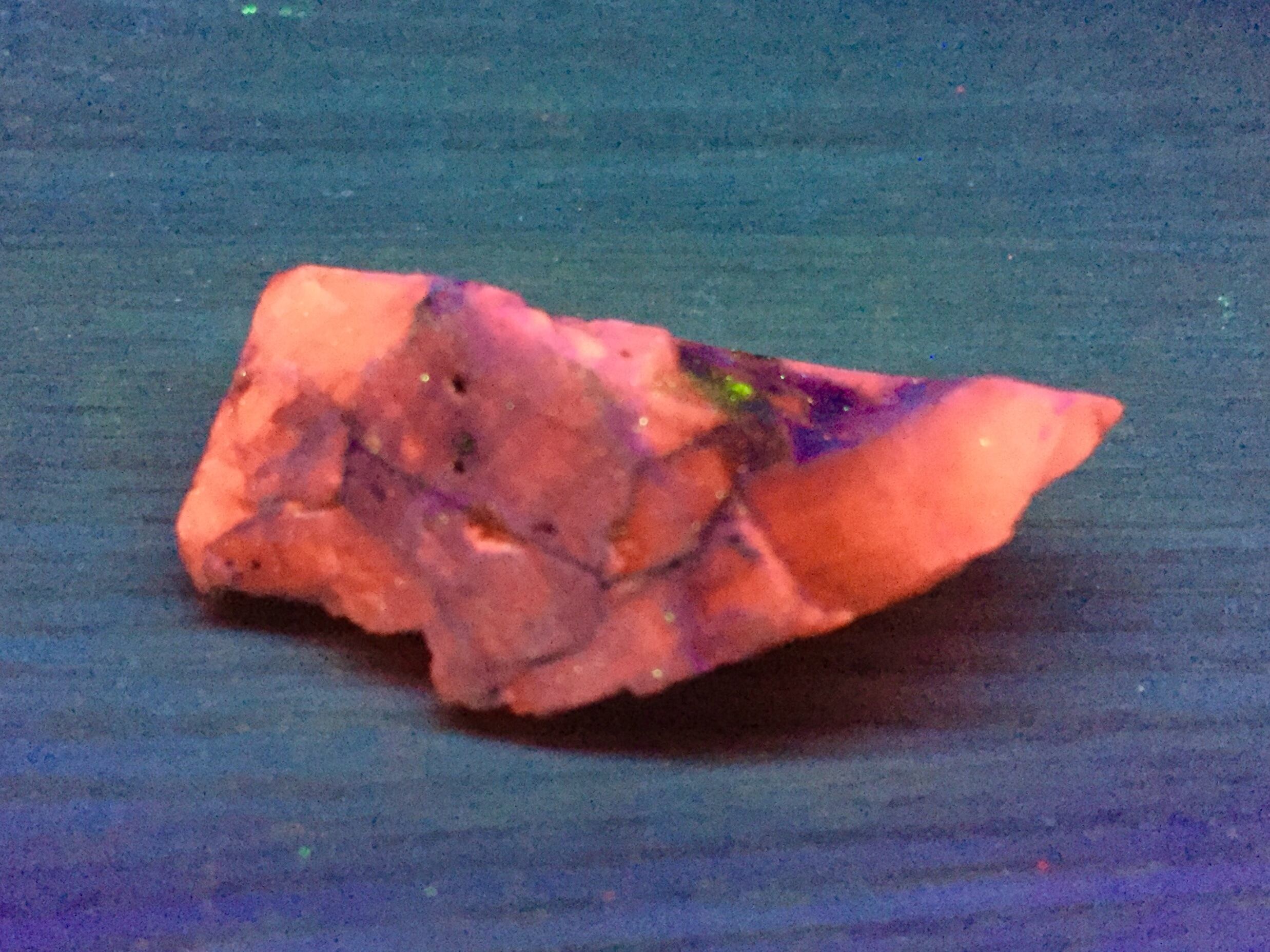 この石は紫外線の「短波」ライトを当てると想像以上の思いも寄らない「輝き」で蛍光します。