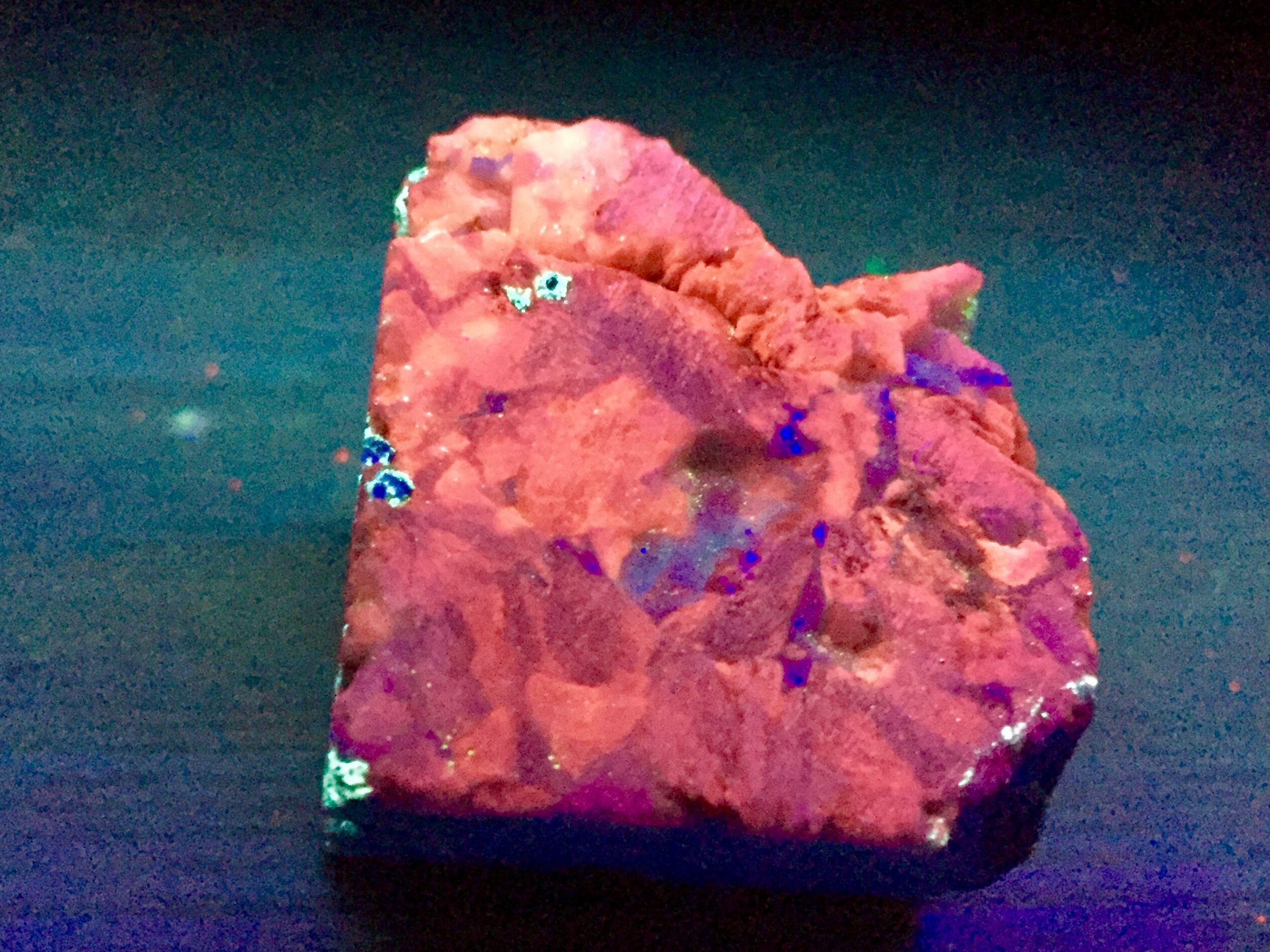この石は紫外線の「短波」ライトを当てると想像以上の思いも寄らない「輝き」で蛍光します。