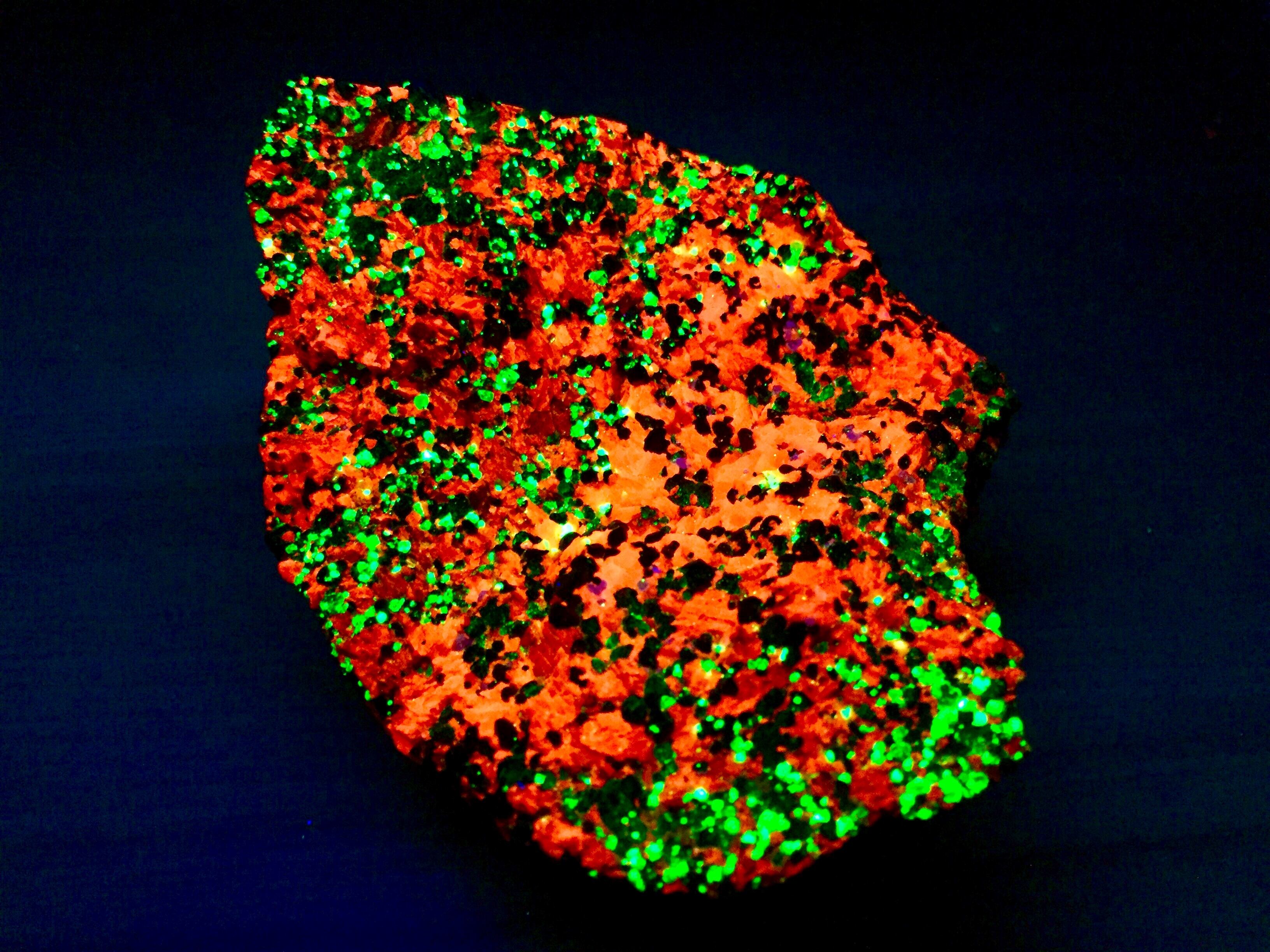この石は紫外線の「短波」ライトを当てると想像以上の思いも寄らない「輝き」で蛍光します。