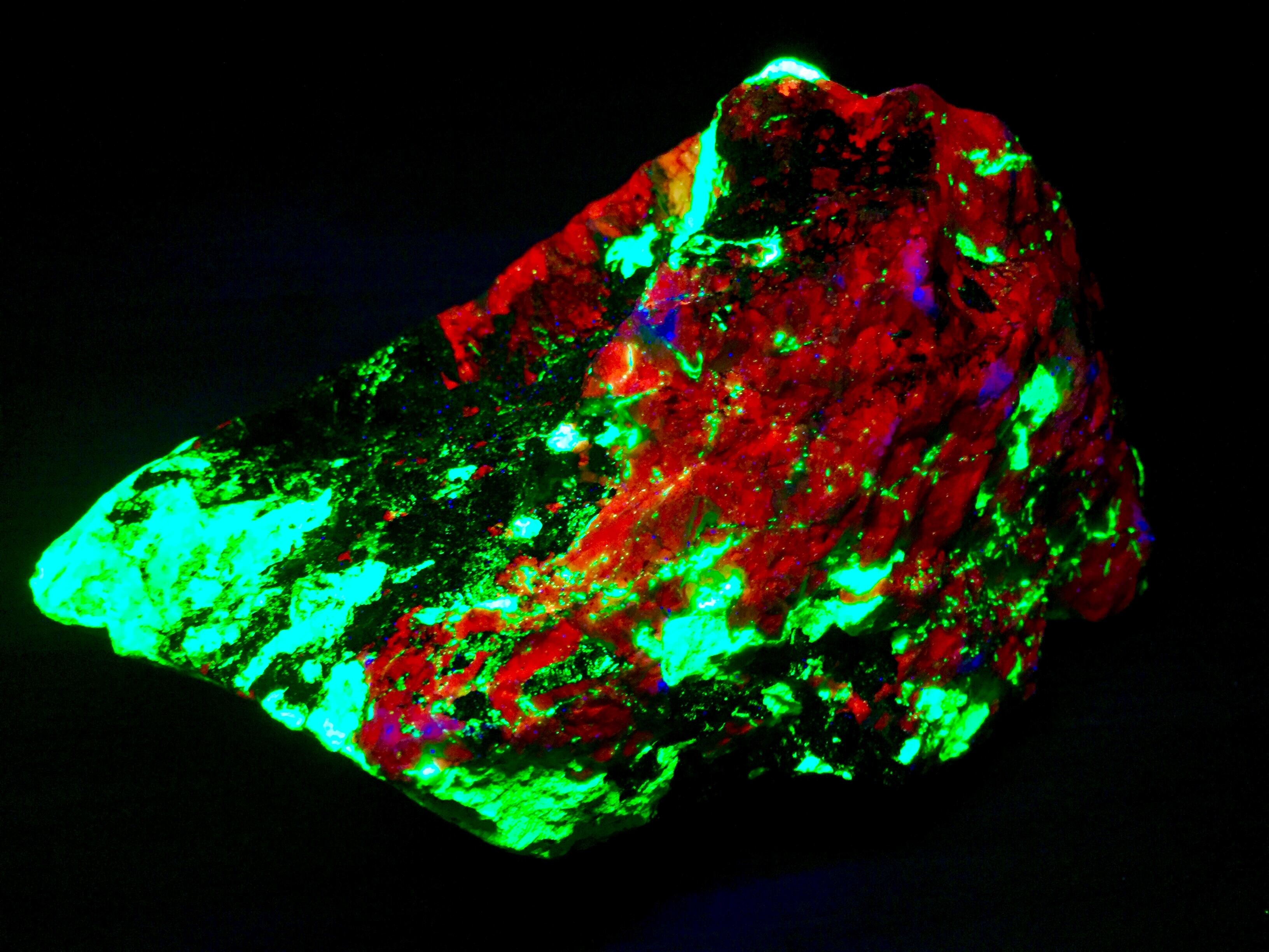 この石は紫外線の「短波」ライトを当てると想像以上の思いも寄らない「輝き」で蛍光します。