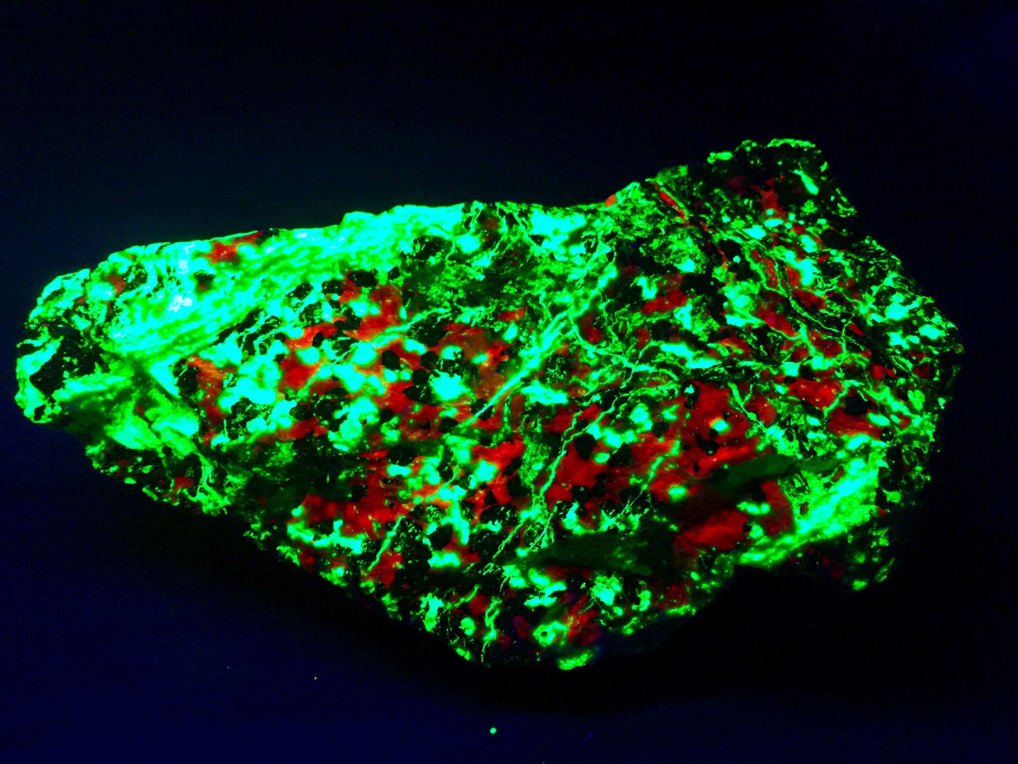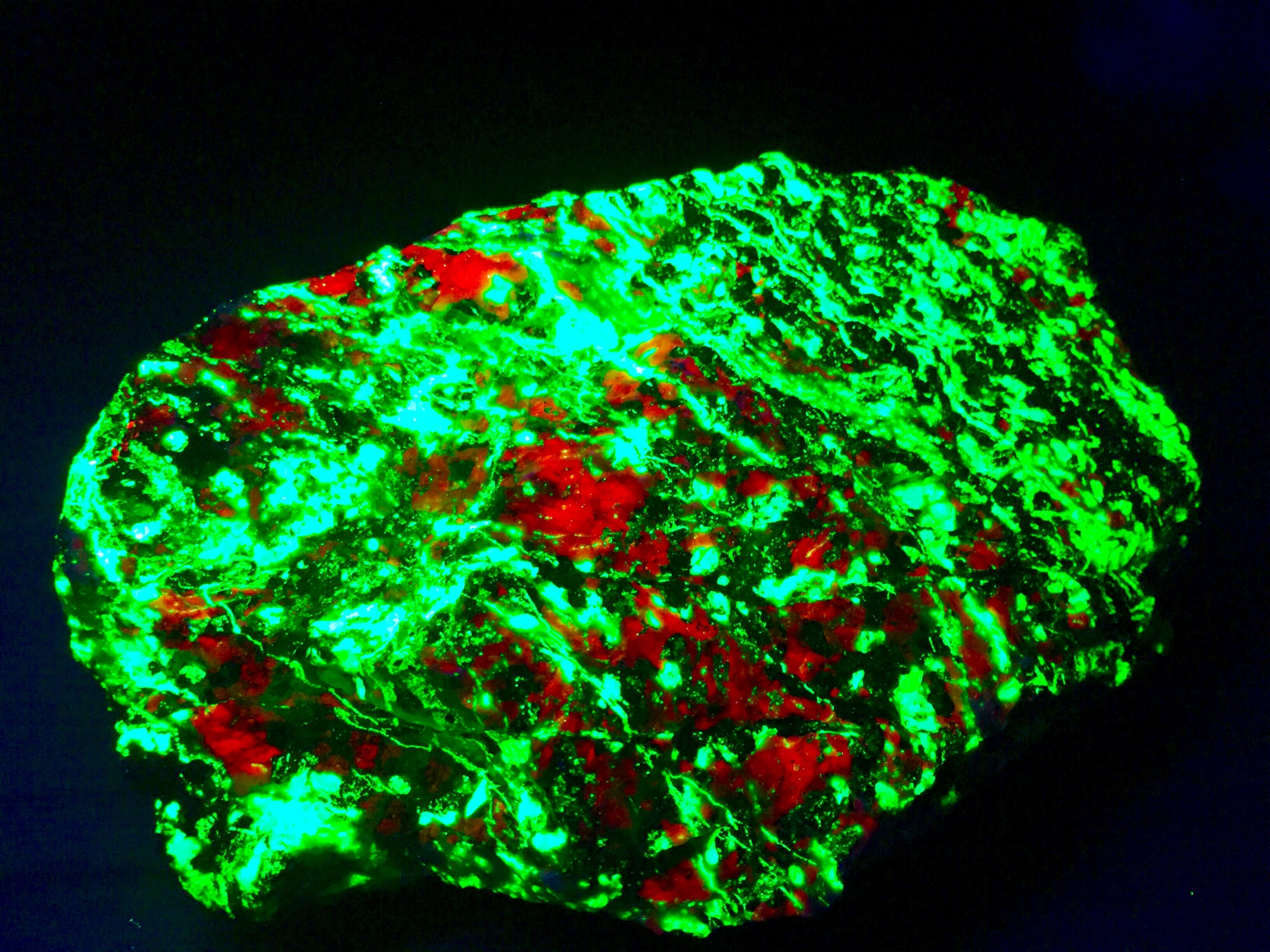 この石は紫外線の「短波」ライトを当てると想像以上の思いも寄らない「輝き」で蛍光します。