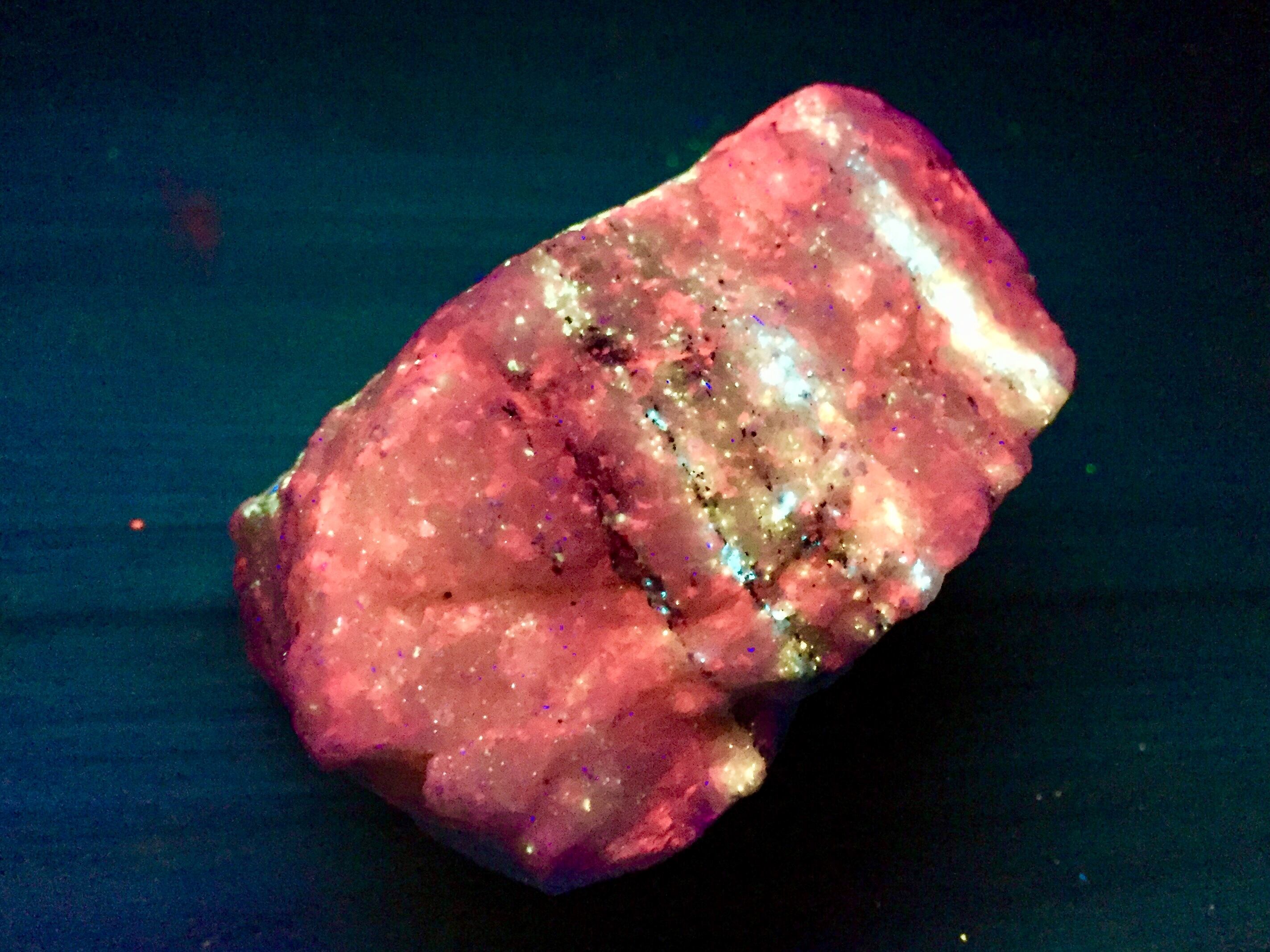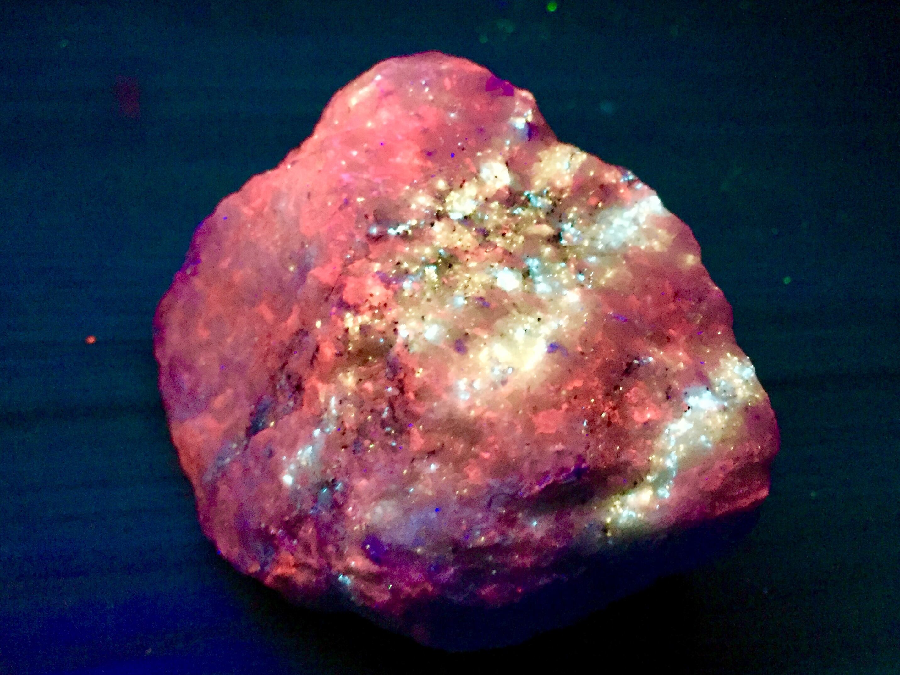 この石は紫外線の「短波」ライトを当てると想像以上の思いも寄らない「輝き」で蛍光します。
