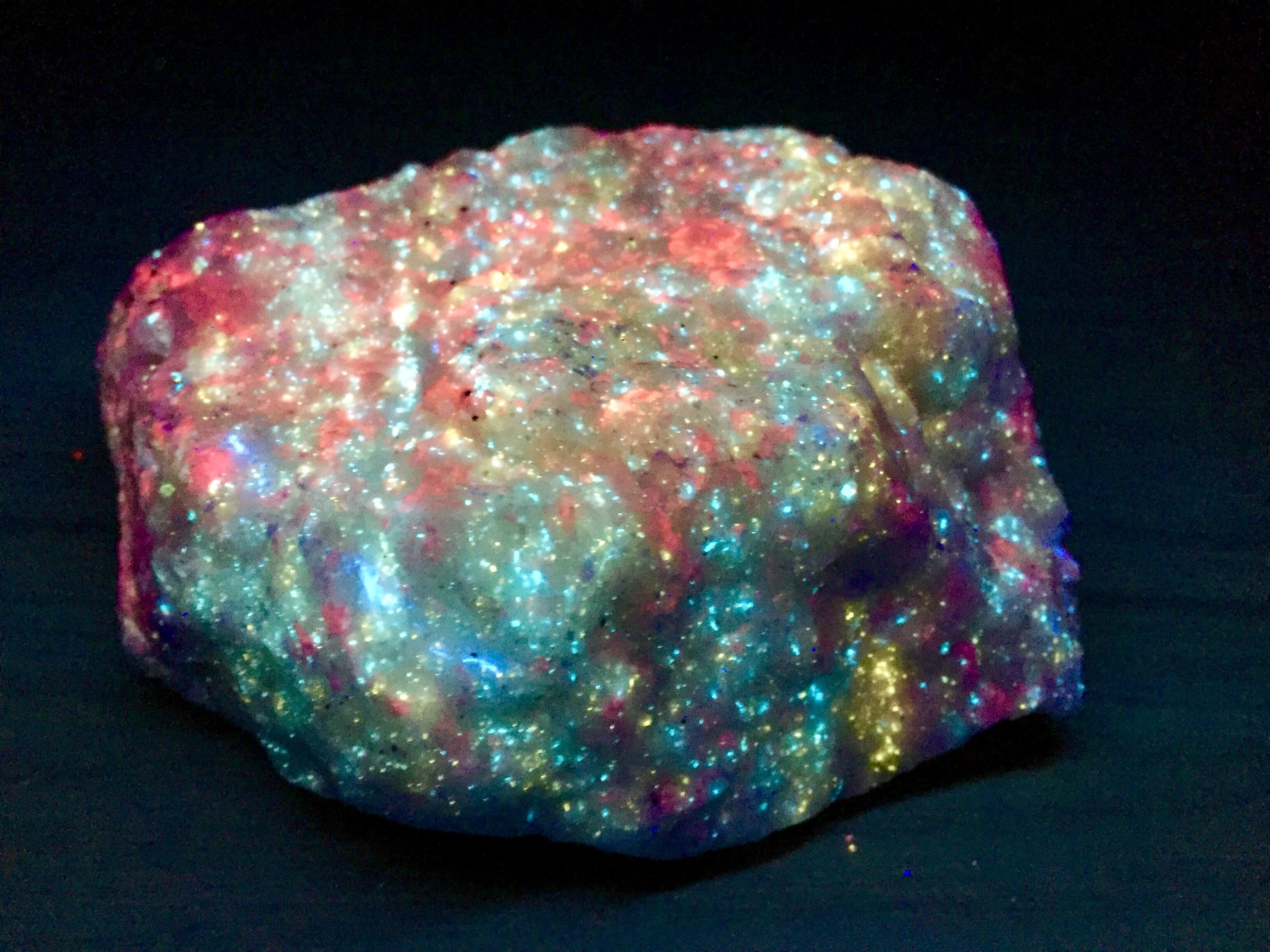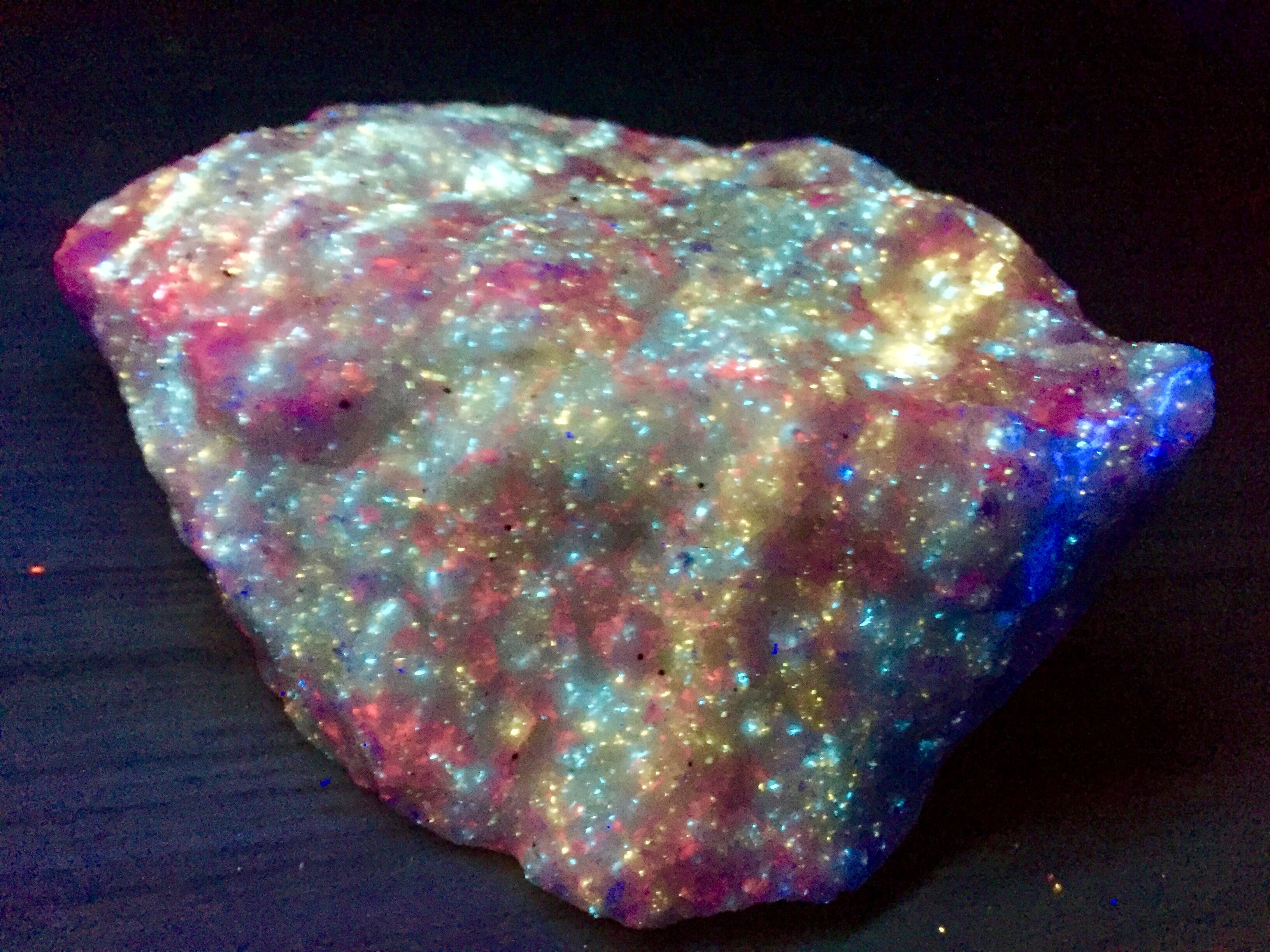 この石は紫外線の「短波」ライトを当てると想像以上の思いも寄らない「輝き」で蛍光します。