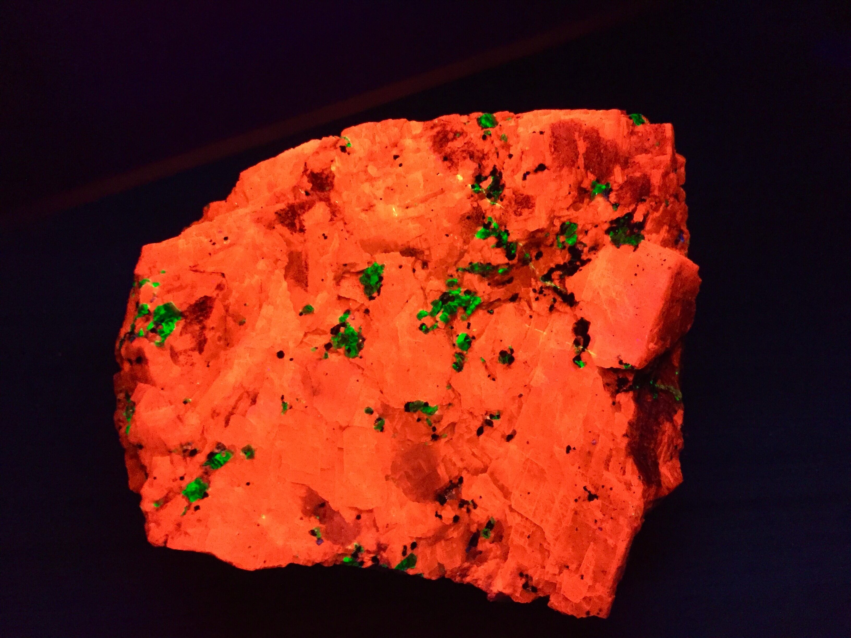 この石は紫外線の「短波」ライトを当てると想像以上の思いも寄らない「輝き」で蛍光します。