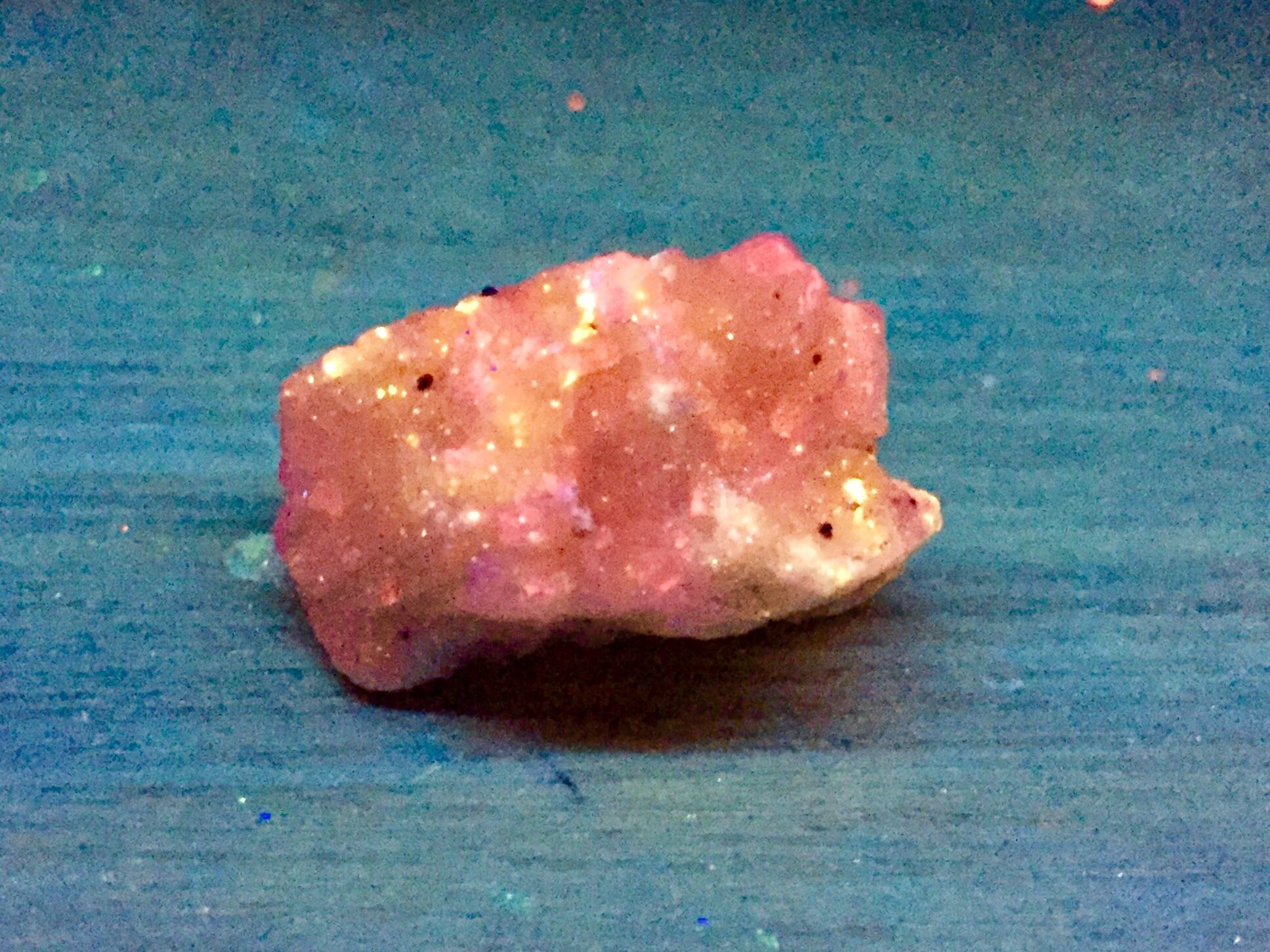 この石は紫外線の「短波」ライトを当てると想像以上の思いも寄らない「輝き」で蛍光します。