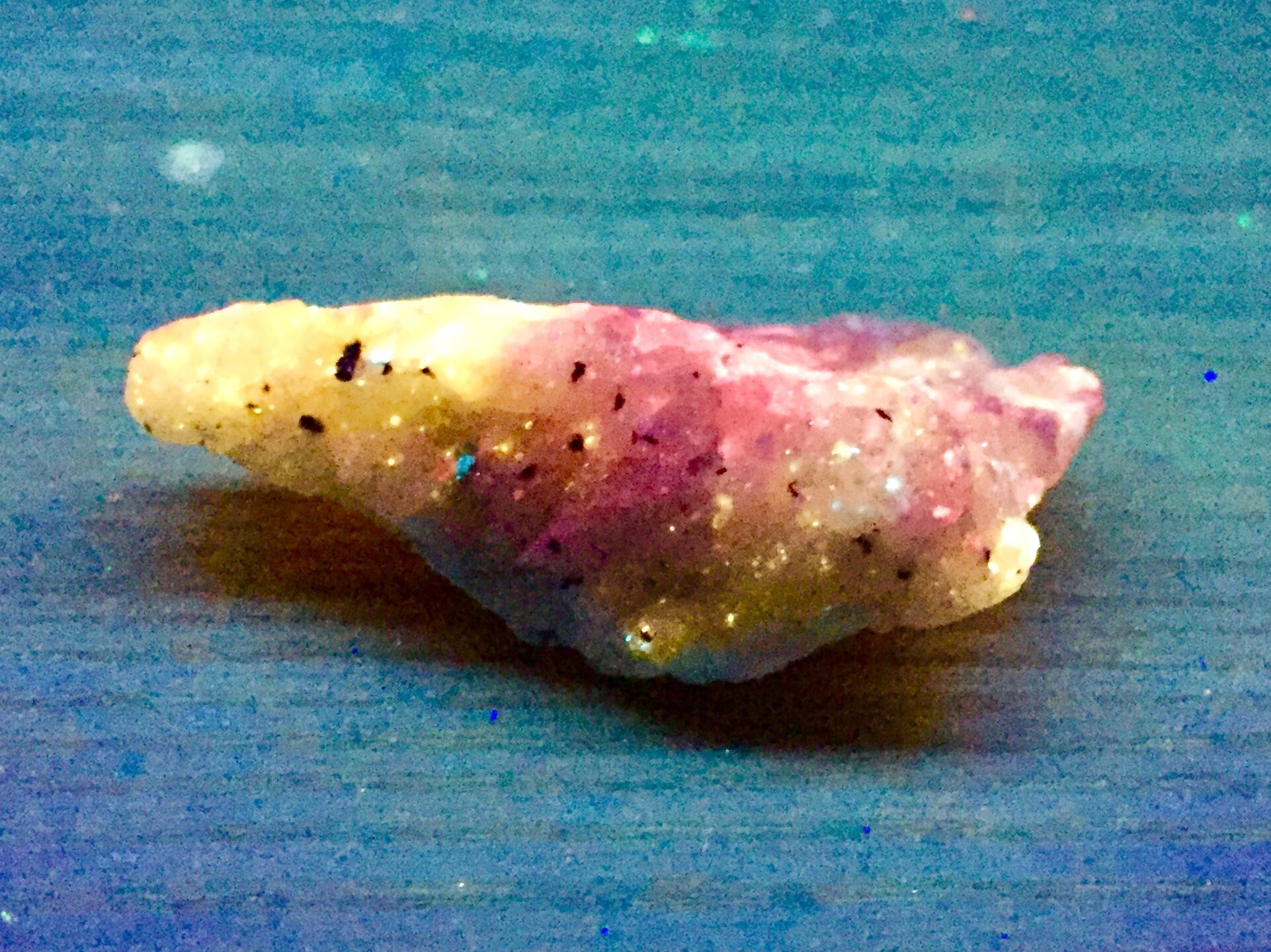 この石は紫外線の「短波」ライトを当てると想像以上の思いも寄らない「輝き」で蛍光します。