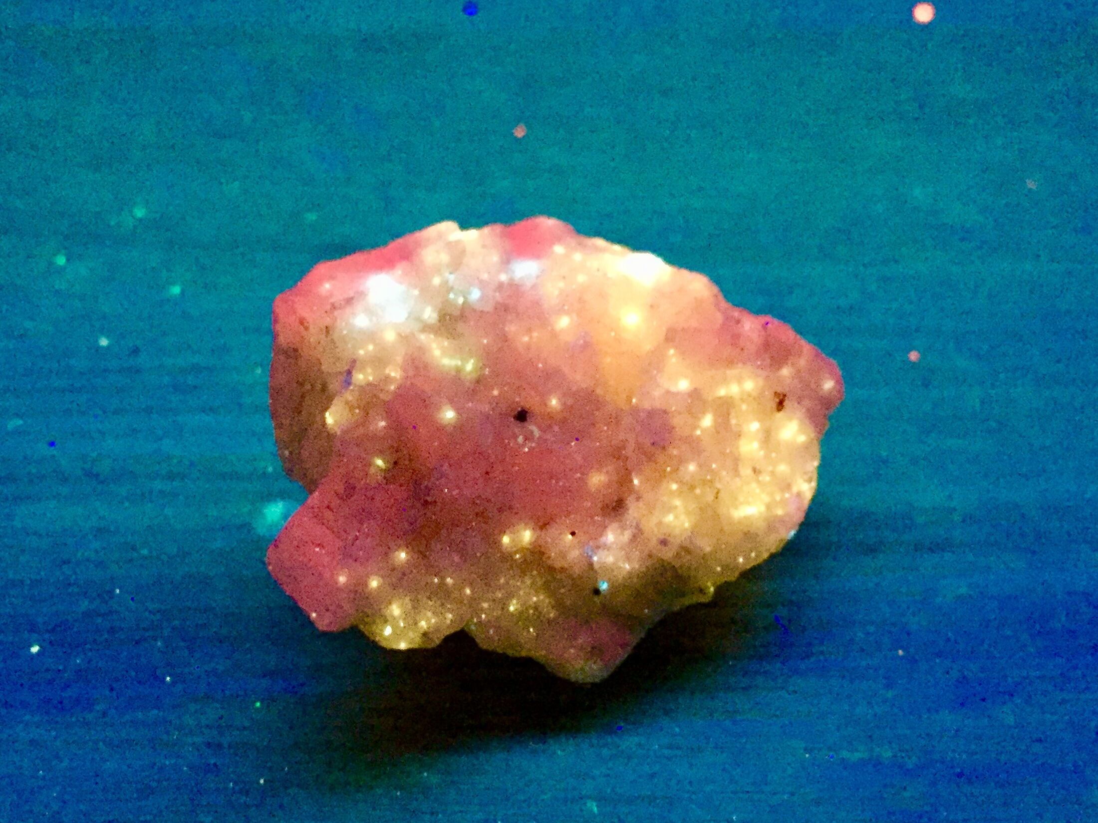 この石は紫外線の「短波」ライトを当てると想像以上の思いも寄らない「輝き」で蛍光します。