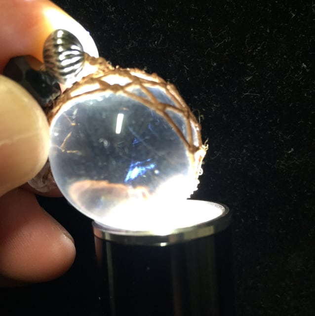 LEDライトを当てると非常に綺麗なブルーの内包物が現れます。