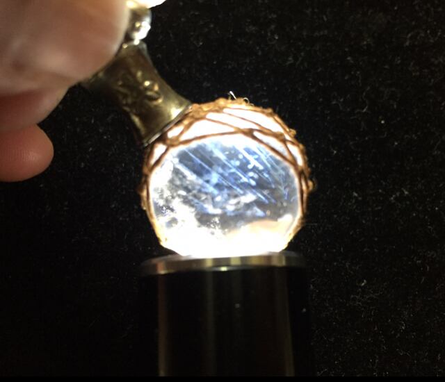 LEDライトを当てると非常に綺麗なブルーの内包物が現れます。